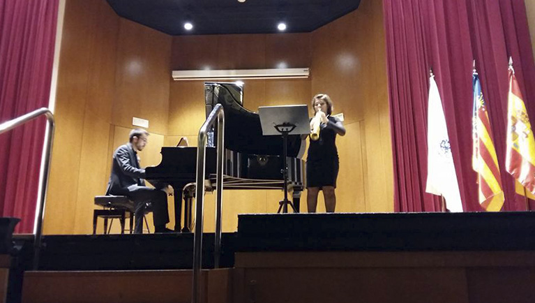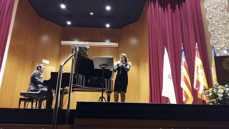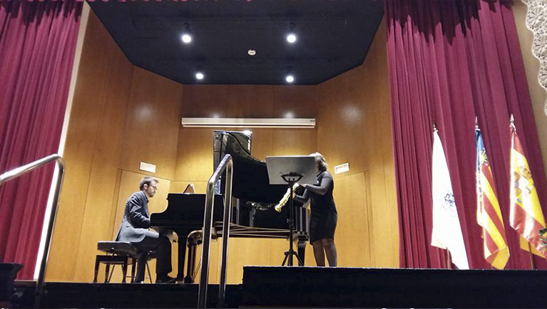 En la sesión de tarde del pasado 23 de octubre de nuevo se llenó el Salón de Actos para celebrar el Concierto de Saxofón y Piano que tuvo una magnífica interpretación por parte de Rocío Sánchez al saxofón y los hermanos, José Songel y Juan Songel al piano. Los muy jóvenes músicos Juan y José Songel Sanchis y Rocío Sánchez conmovieron al público tanto con su interpretación de clásicas y complejas obras de Bach, Chopin o Rachmaninoff. Los tres hicieron las delicias de un Salón de Actos que rozó el lleno para ver a estos tres prodigios del piano y el saxo.