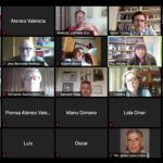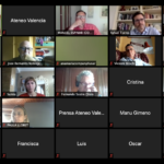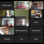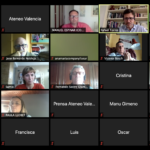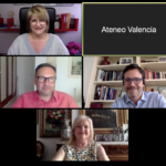 La webinar del Ateneo Mercantil "El futuro del comercio y de la hostelería" contó con la intervención de Rafael Torres, presidente de Confecomerç y Manuel Espinar, representante de la Federación de Empresarios de la Hostelería de Valencia. La mesa redonda estuvo moderada por la periodista Silvia Soria y presentada por Carmen de Rosa, presidenta del Ateneo Mercantil.