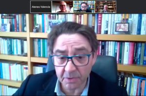 El profesor Manuel Sanchis i Marco fue claro y conciso en la webinar que ha ofrecido sobre el futuro de la Unión Europea en esta crisis del COVID-19. "Si el cosmopolitismo ha ejercido de contrapeso a la globalización, ahora le toca al europeísmo frenar la violencia larvada del nacional-populismo de algunos Estados europeos", destacó. Y añadió "para conquistar la paz será necesario, mediante el derecho europeo, domesticar la violencia de los Estados, despojarlos de su carácter autoritario y orientarlos hacia la justicia".