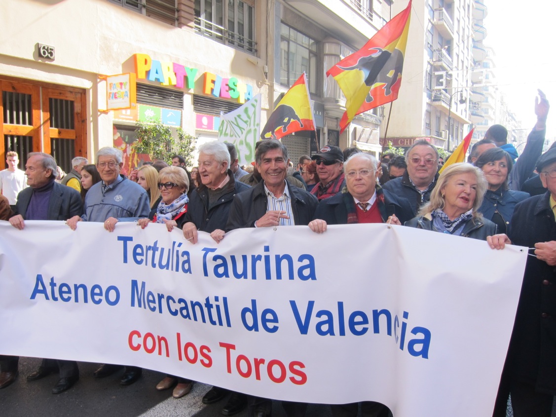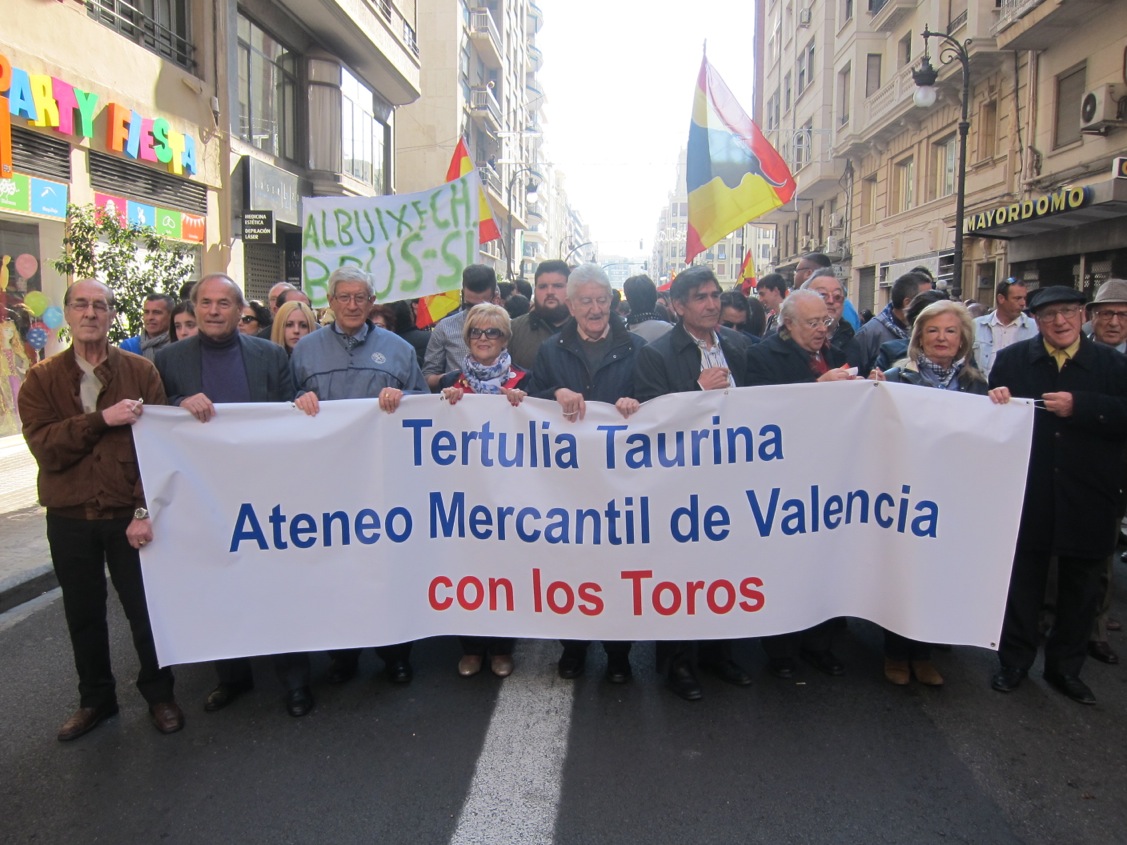 Las más de 30.000 personas que se manifestaron en Valencia el pasado 13 de marzo ha marcado el camino que deben seguir los aficionados a los toros: “Unión, compromiso y beligerancia”. La Tertulia Taurina del Ateneo Mercantil de Valencia, junto a muchos otros socios, salió a la calle de la mano de toreros como Ponce, El Juli, José Tomás, Morante, Sebastián Castella, Manzanares, César Rincón, Ortega Cano o 'El Soro'. Ellos encabezaron una multitudinaria manifestación que recorrió las calles de Valencia. Todos los estamentos de la tauromaquia se dieron cita en Valencia.