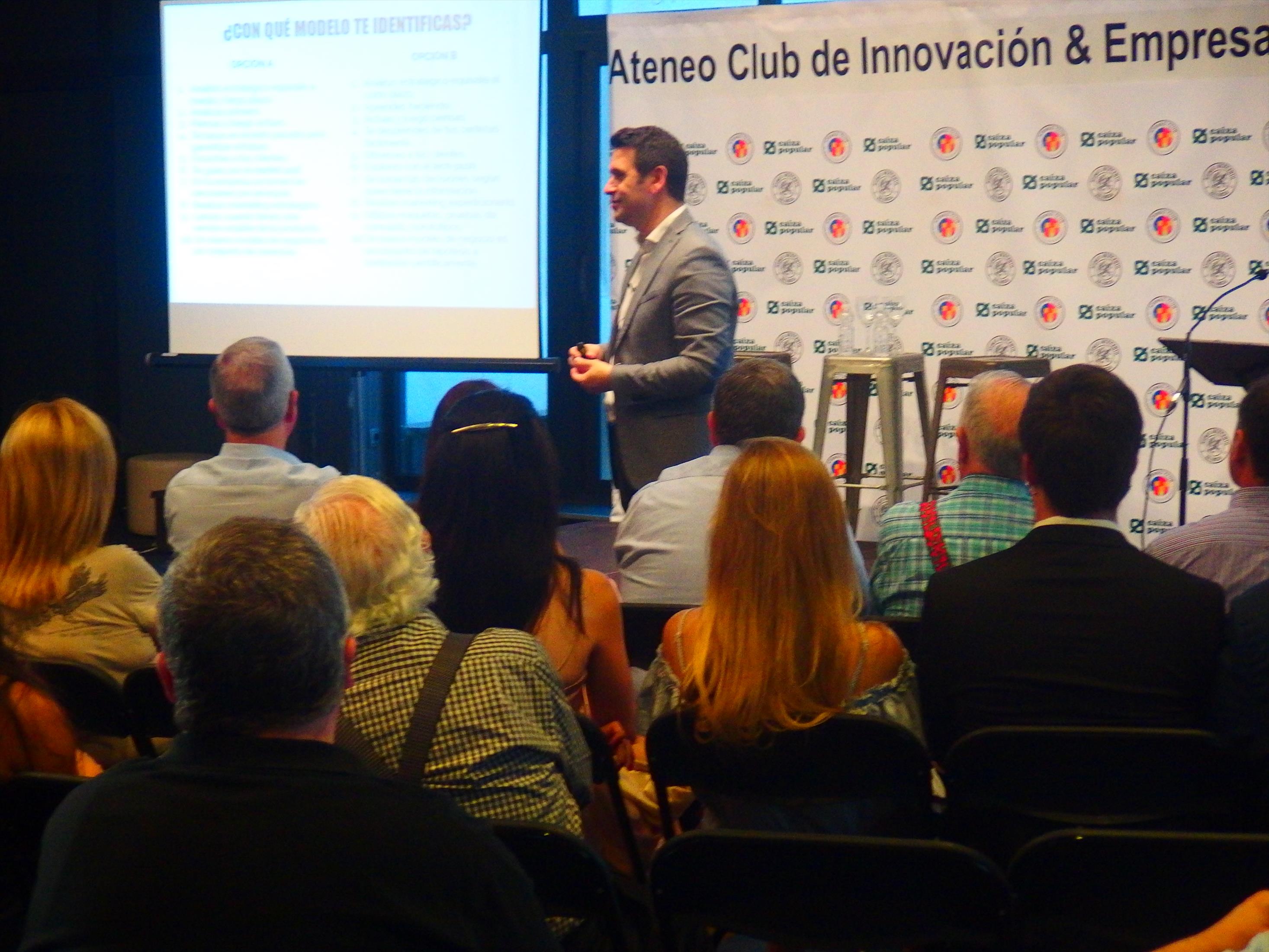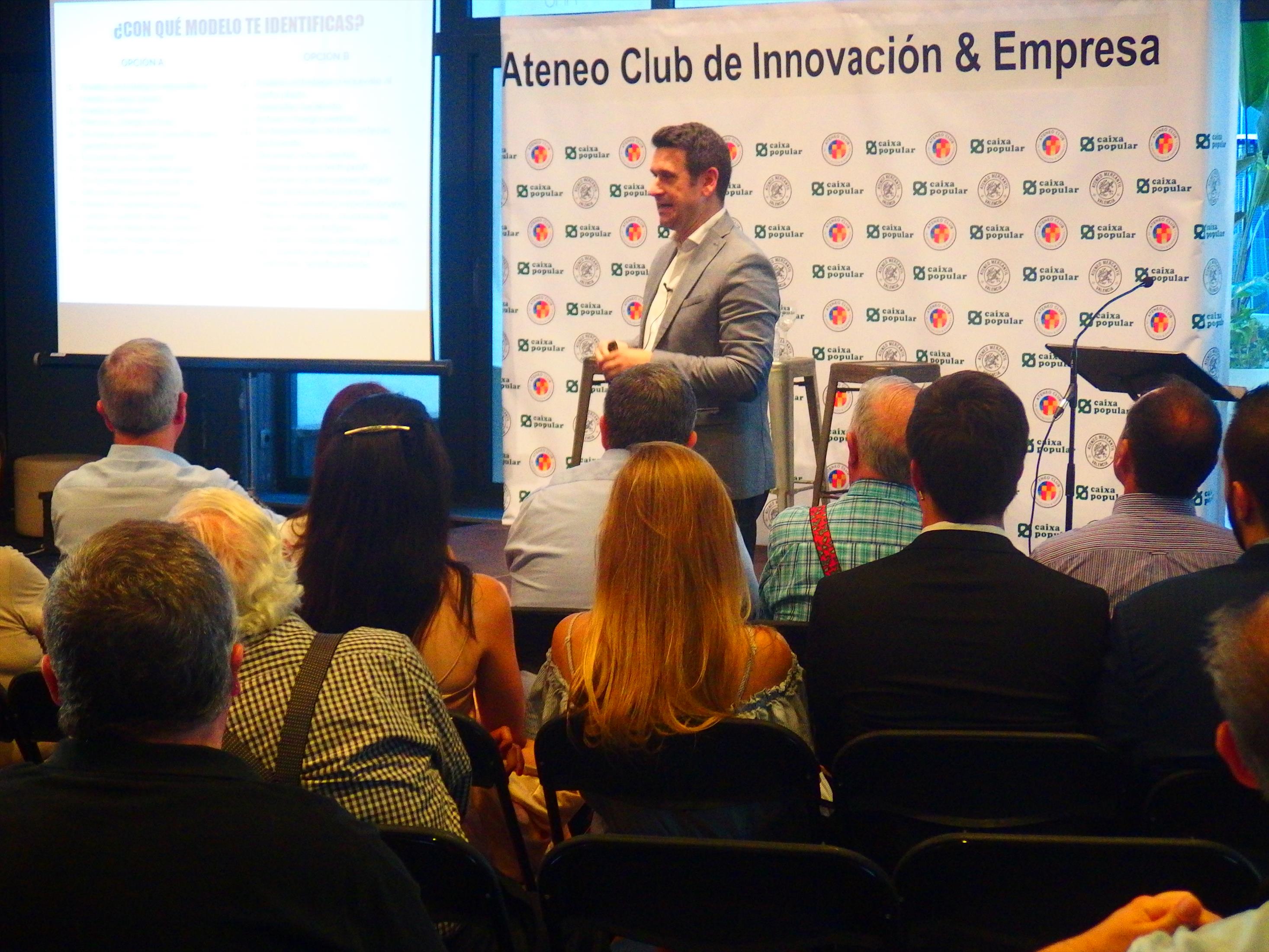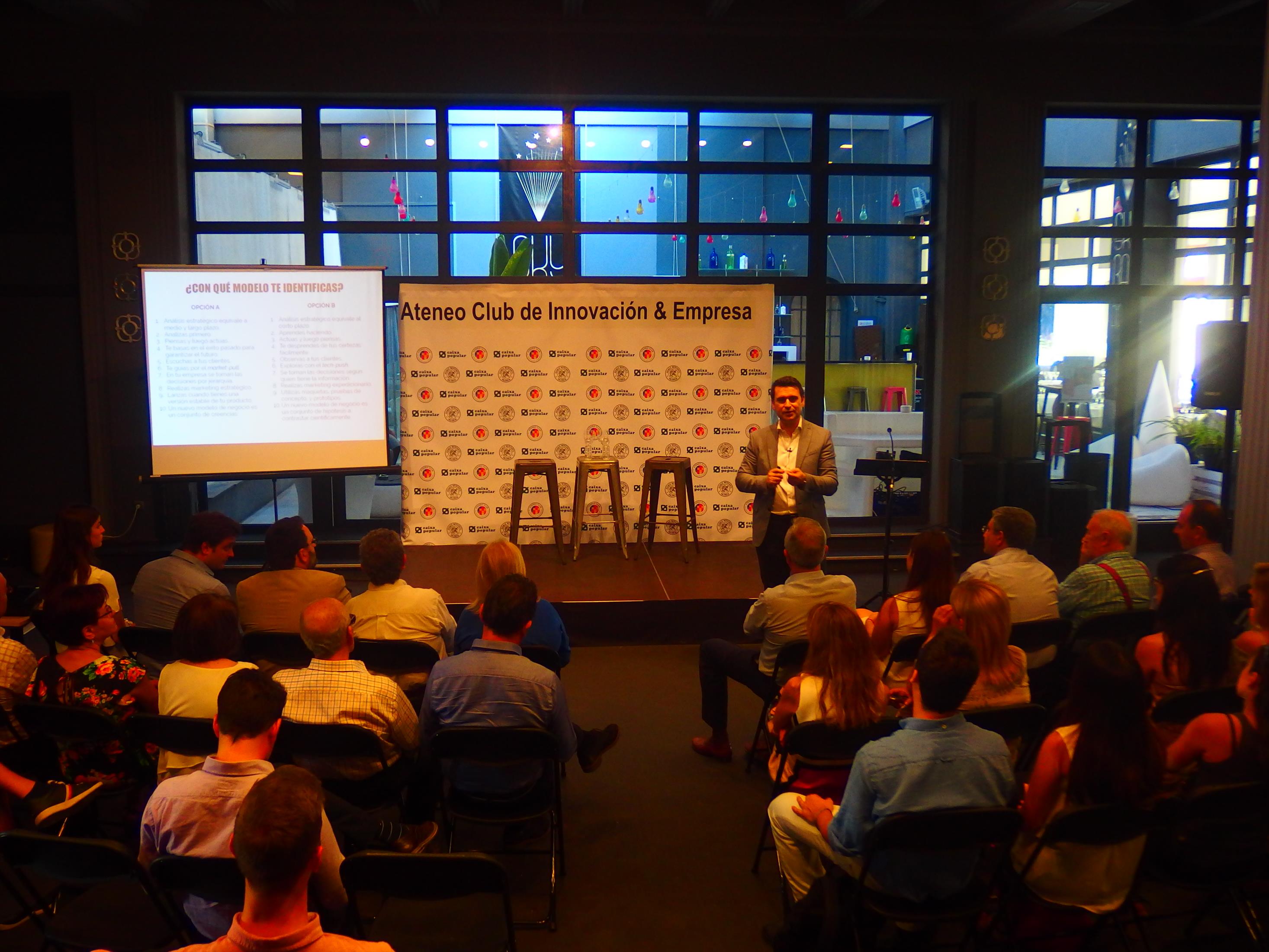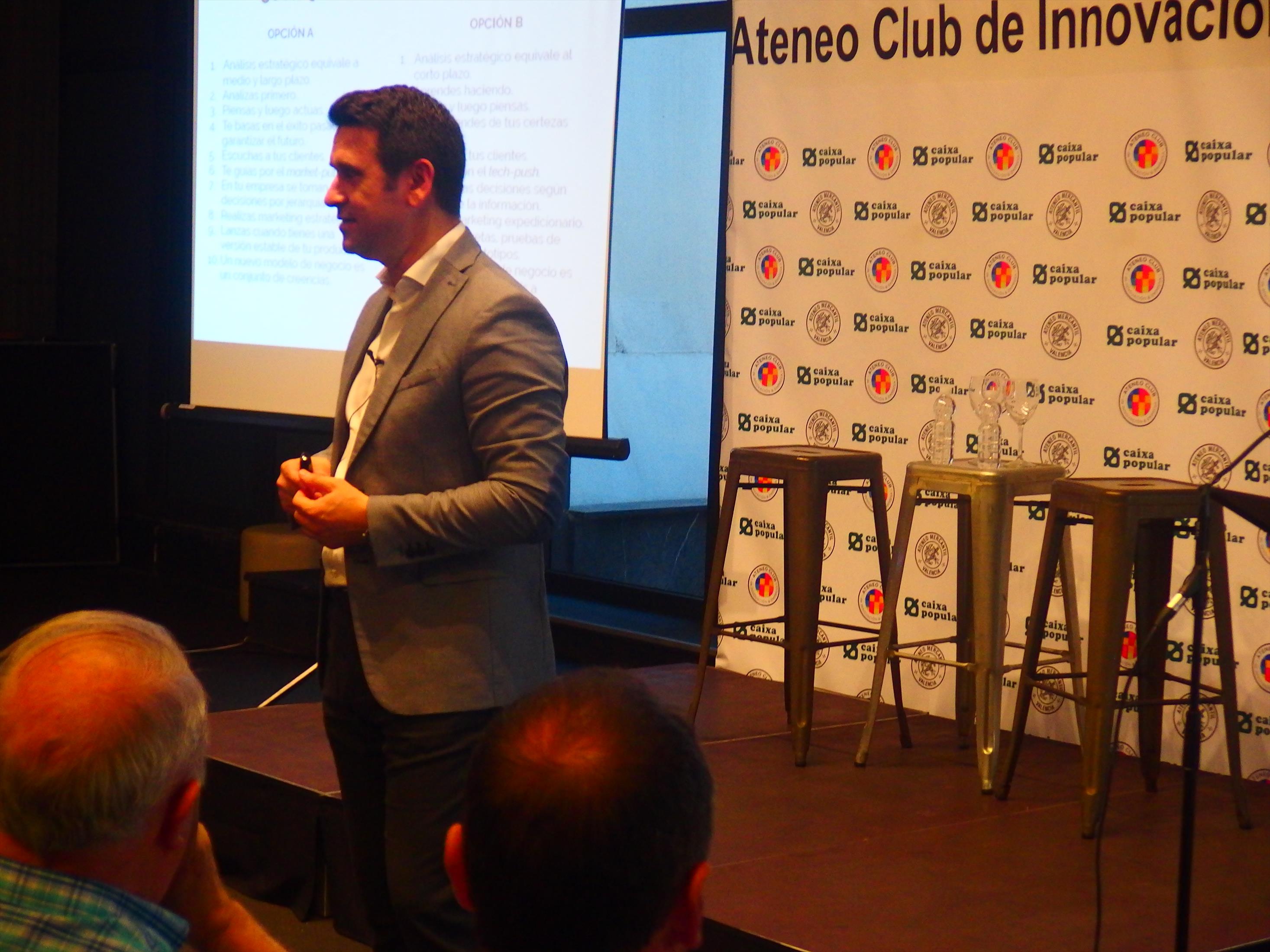 El experto en diseño de modelos de negocio y aplicación de metodologías ágiles de innovación para startups y compañías, Miguel Macías, impartió una conferencia para medio centenar de emprendedores en el Ateneo Mercantil de Valencia en la que habló de cómo hay que recorrer el camino para innovar. El CEO fundador de Advenio y de Bevator, y advisor en Geographica dio varias claves para ayudar a tomar decisiones y aplicar la innovación en cualquier proceso de lanzamiento de un producto o servicio al mercado.
