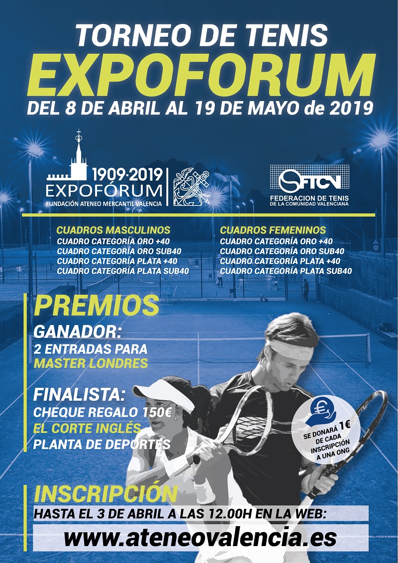 La Federación de Tenis de la Comunidad Valenciana desea unirse a la celebración de Expofórum 2019 Valencia, apoyando y dando a conocer dicho evento a través de una serie de actividades que, teniendo el deporte como eje, promoverán algunos de los valores más importantes que deben prevalecer en la nueva sociedad del siglo XXI, como son la cultura del esfuerzo, la sociabilidad desde el respeto y el fair play, o el disfrute de un nuevo modelo de ocio saludable y sostenible.