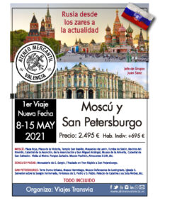 El viaje a Rusia llevará a nuestros socios y sus acompañantes a Moscú y San Petersburgo para descubrir de cerca la Rusia de los zares hasta nuestros días. El viaje se realizará en dos grupos: