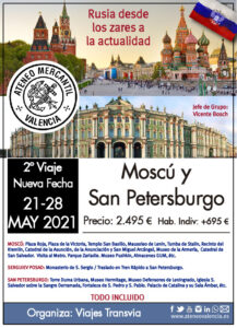 La crisis sanitaria mundial por el Covid19 obligó al Ateneo Mercantil a posponer el viaje programado con la agencia Transvía Viajes para el mes de mayo a Rusia, que iba a llevar a un centenar de socios y acompañantes hasta la capital, Moscú, y a la Ciudad de los Zares, San Petersburgo.