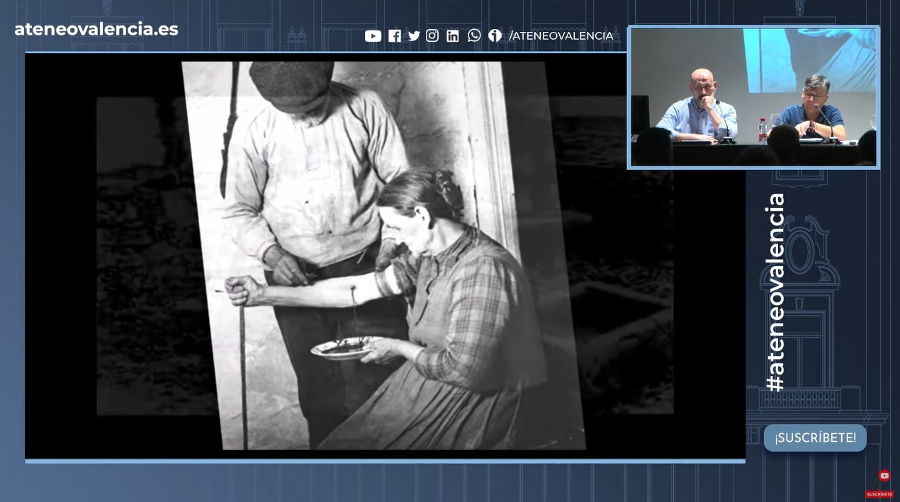La conferencia abordó diversos oficios relacionados con la medicina e incluso con la muerte a lo largo de la historia, remontándose a la antigüedad en civilizaciones como la egipcia, griega y romana, donde se buscaba sanar enfermedades que la medicina de la época no podía explicar. Se mencionaron figuras como las curanderas, brujas y hechiceras, que poseían amplios conocimientos en botánica y herboristería para tratar enfermedades. Unos oficios que surgieron para cubrir un vacío profesional en el tratamiento de enfermedades que la medicina convencional no podía abordar.