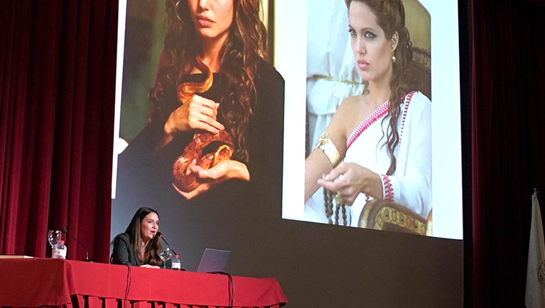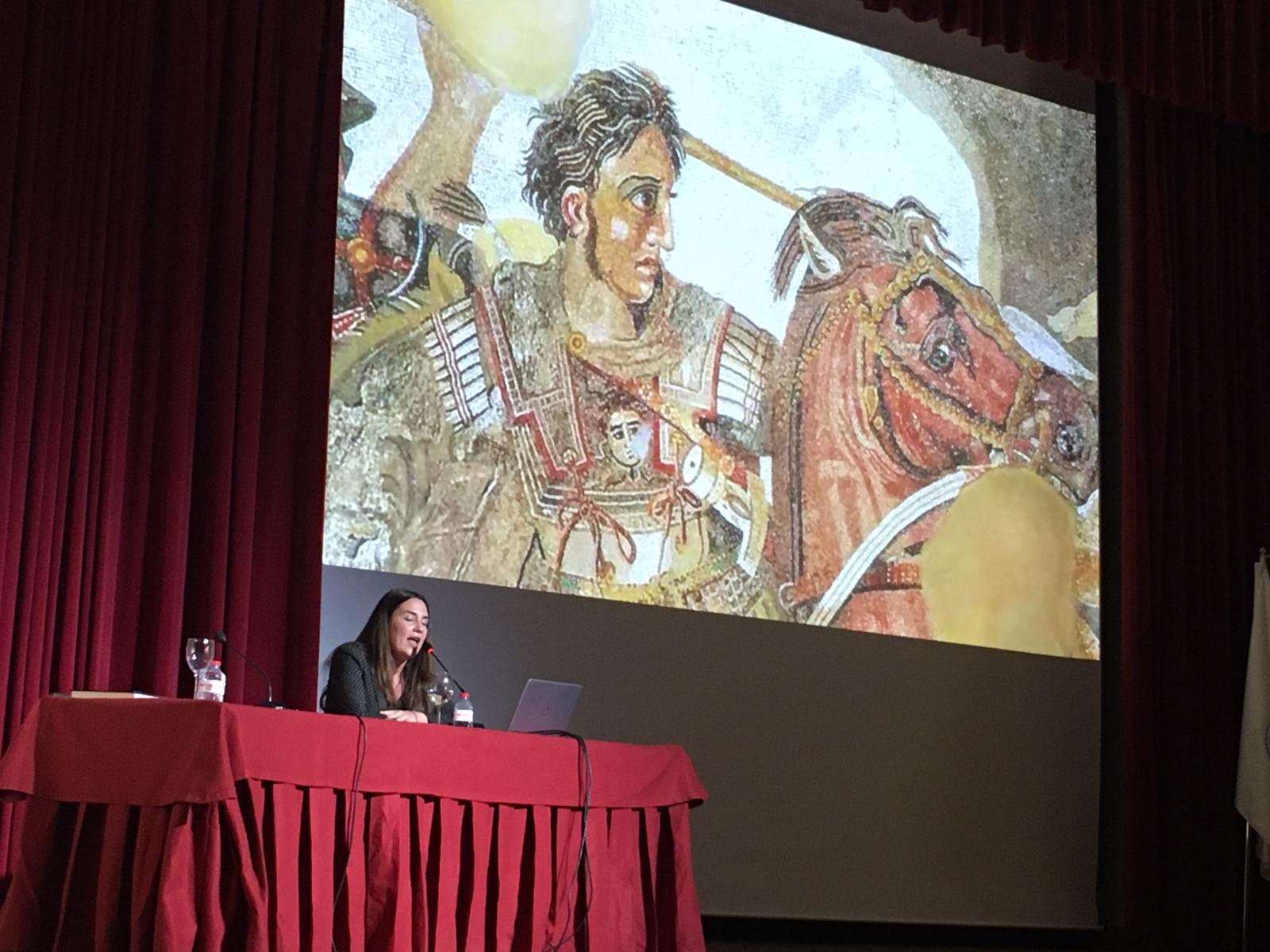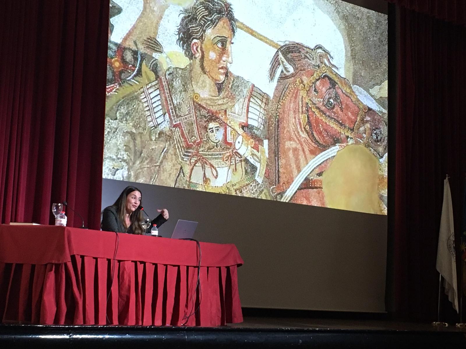 Laura Mas, quien escribió en primera persona la vida de Olimpia en una novela homónima, nos trajo una conferencia con un enorme rigor histórico. Olimpia se llamaba Políxena, nombre que cambió por el de Myrtale cuando se casó con Filipo y que más tarde modificó por el de Olimpia en memoria de la victoria que Filipo obtuvo en los Juegos Olímpicos. Terminaría sus días como Estratonice, en honor a un triunfo de su nieto. Laura Mas combinó las escasas fuentes antiguas en las que aparece con ensayos actuales de historiadores. Los testimonios de los coetáneos hablan de una mujer denostada, como no podía ser de otra manera. Hablan de ella como si fuera una bruja, una hechicera, una persona maligna y oscura. Eso se debe a que Olimpia era muy ambiciosa. Su máximo cometido era perpetuar su dinastía.