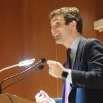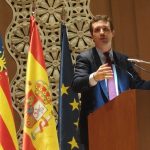 Pablo Casado ofreció una conferencia de una hora en el Salón de Actos y se mostró apasionado por el futuro de Europa, también se mostró preocupado ante el desafío independentista en Cataluña y puso a la Comunitat Valenciana como ejemplo de tierra trabajadora y comprometida con la unidad del país. De hecho, destacó que "Valencia puede ser la capital del Mediterráneo".