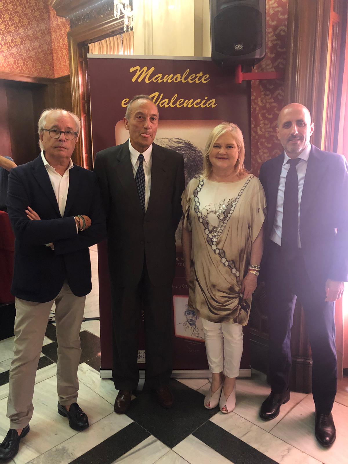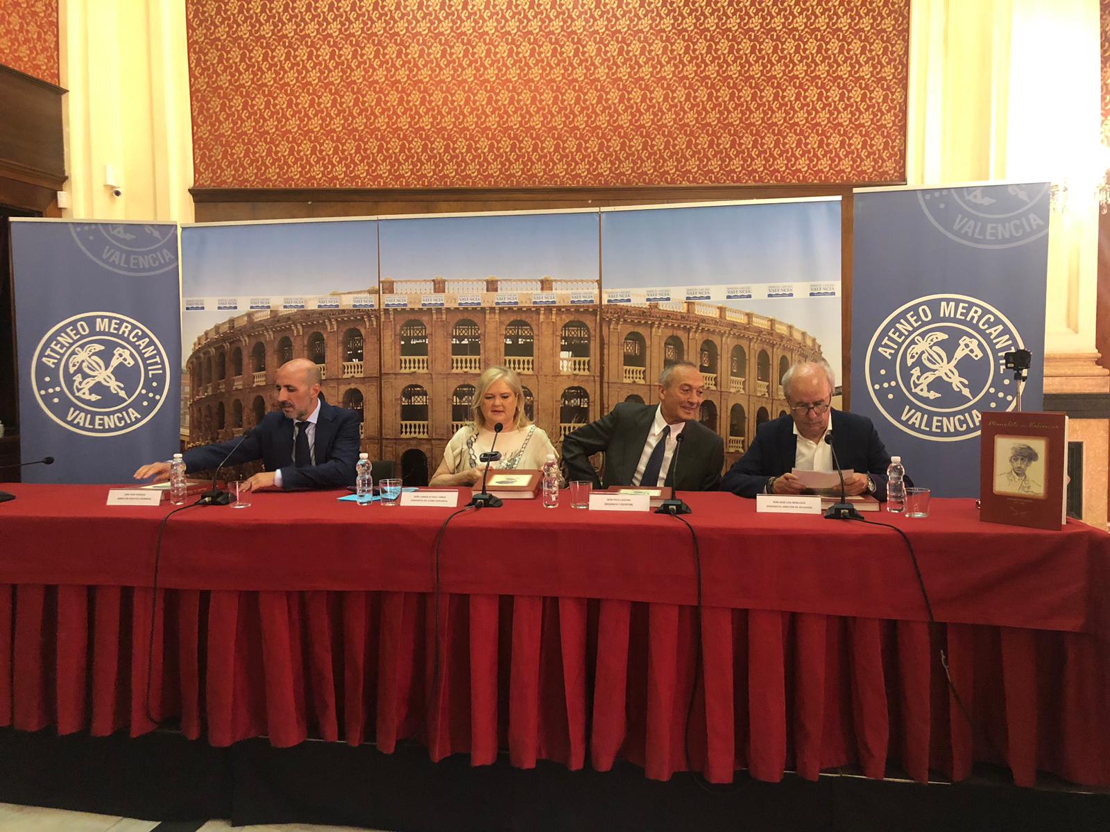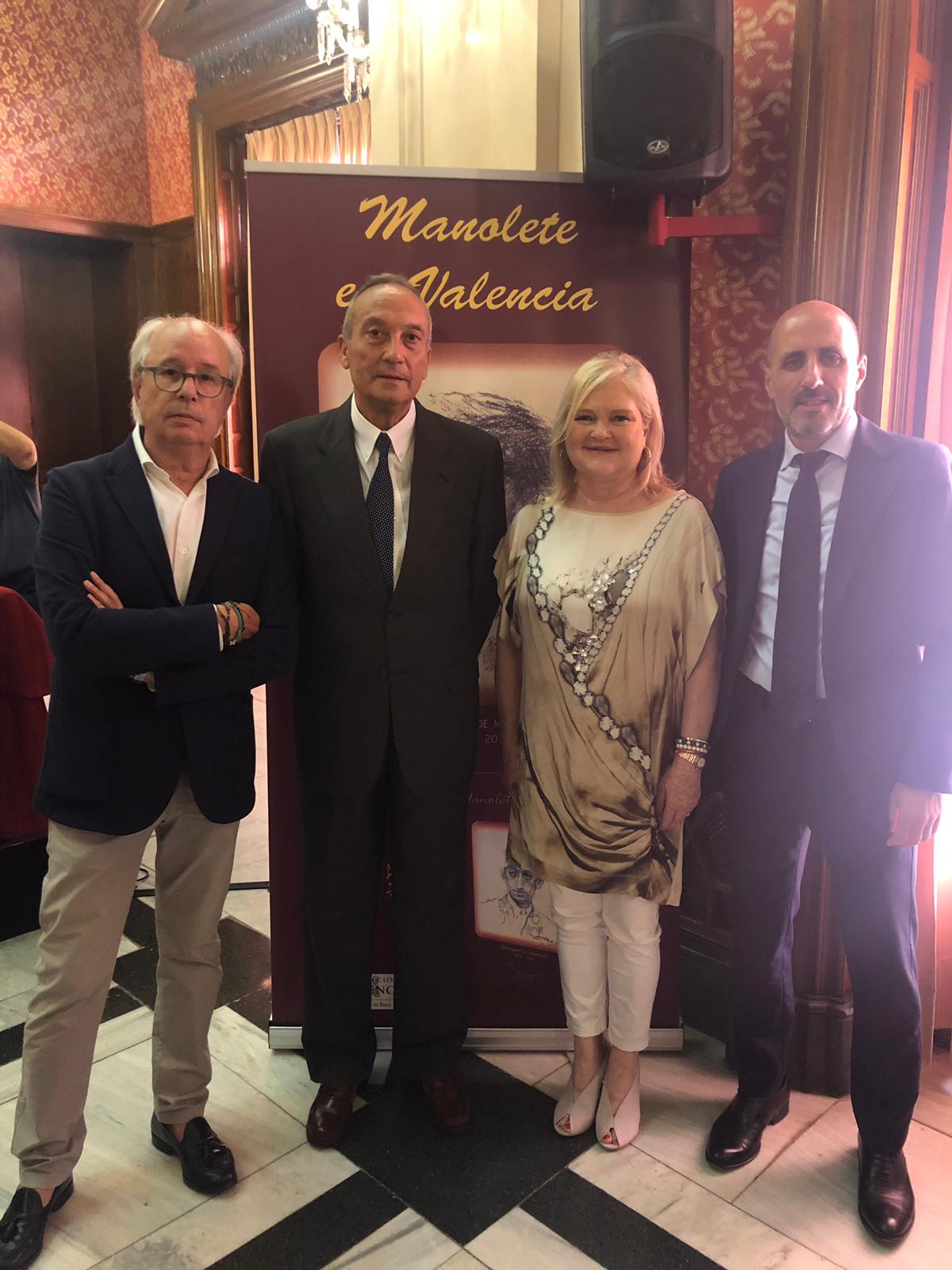 La presidenta del Ateneo Mercantil de Valencia, Carmen de Rosa, no ha querido perderse su cita con los dos autores y ha actuado de fiel anfitriona; Carmen arrancó el acto con un emotivo discurso en el que destacó la importancia de contar con dos grandes autores y que tanto conocen la figura de Manolete: "Que el libro vaya firmado por estos dos autores es toda una garantía de calidad y veracidad", destacó. Por cierto, una obra que se completa con un excepcional prólogo del director de Aplausos, el periodista taurino José Luis Benlloch, quien además, presentó el acto en el Salón Stolz.