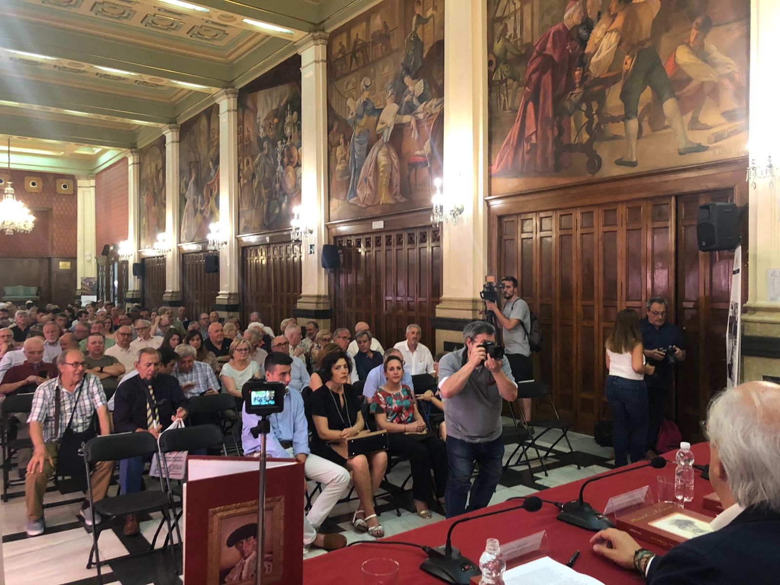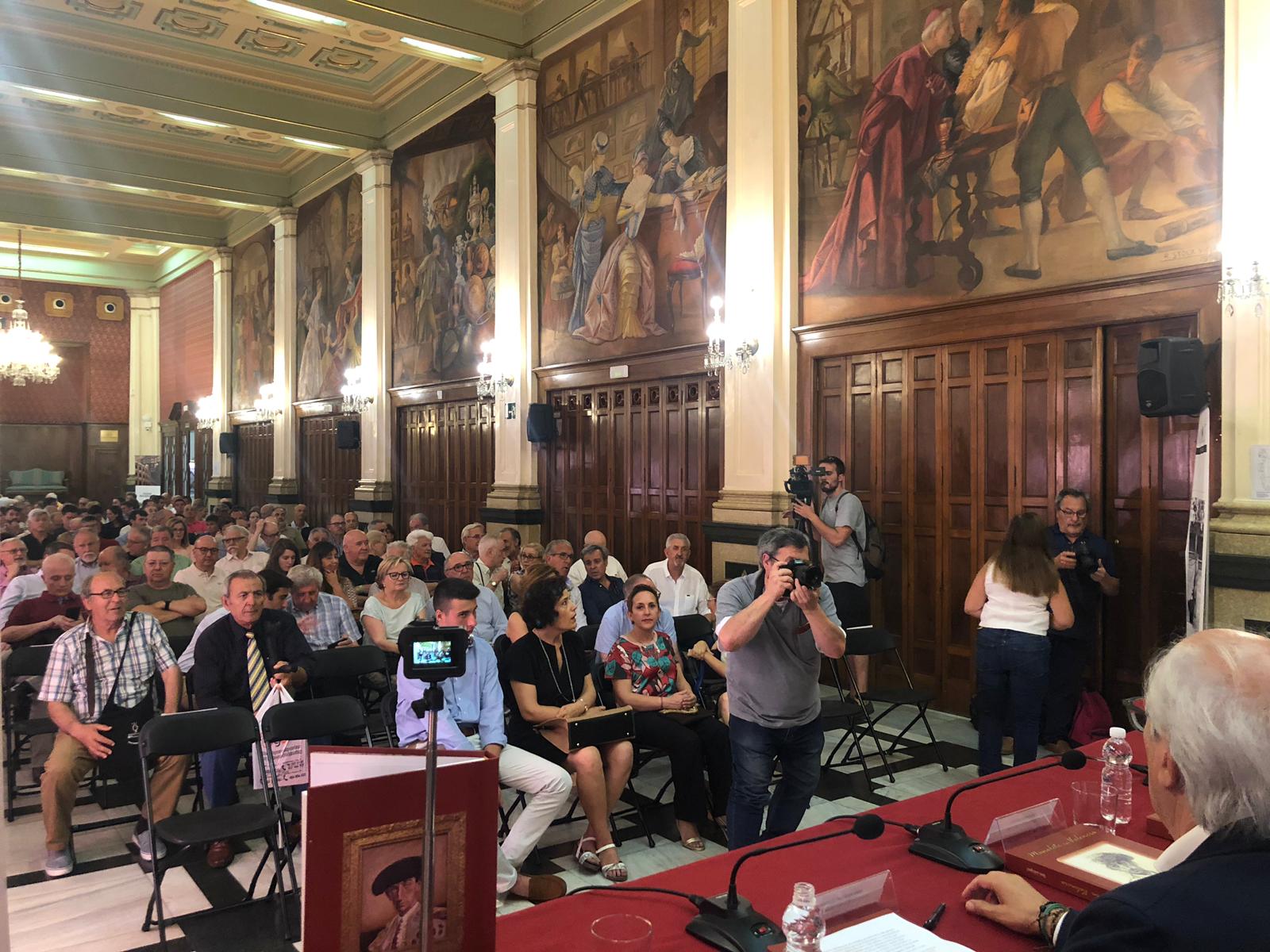 El Ateneo Mercantil de Valencia se ha erigido como el punto de encuentro de la tauromaquia de Valencia; da igual que se haga un debate político, que se den conferencias, se hagan homenajes o exposiciones, que se entreguen premios... siempre se llena hasta la bandera. Este jueves le tocaba el turno a la presentación del libro "Manolete en Valencia", editado por la Diputación, una magnífica obra enciclopédica en la que sus autores Toni Gázquez, director del Centro de Asuntos Taurinos de la Diputación Provincial y encargado de la Escuela Taurina de Valencia, y Paco Laguna, biógrafo de Manolete, han recopilado durante 30 años y en más de 400 páginas toda la información y material gráfico y documental que han ido encontrando sobre el legendario torero cordobés y la ciudad del Turia.