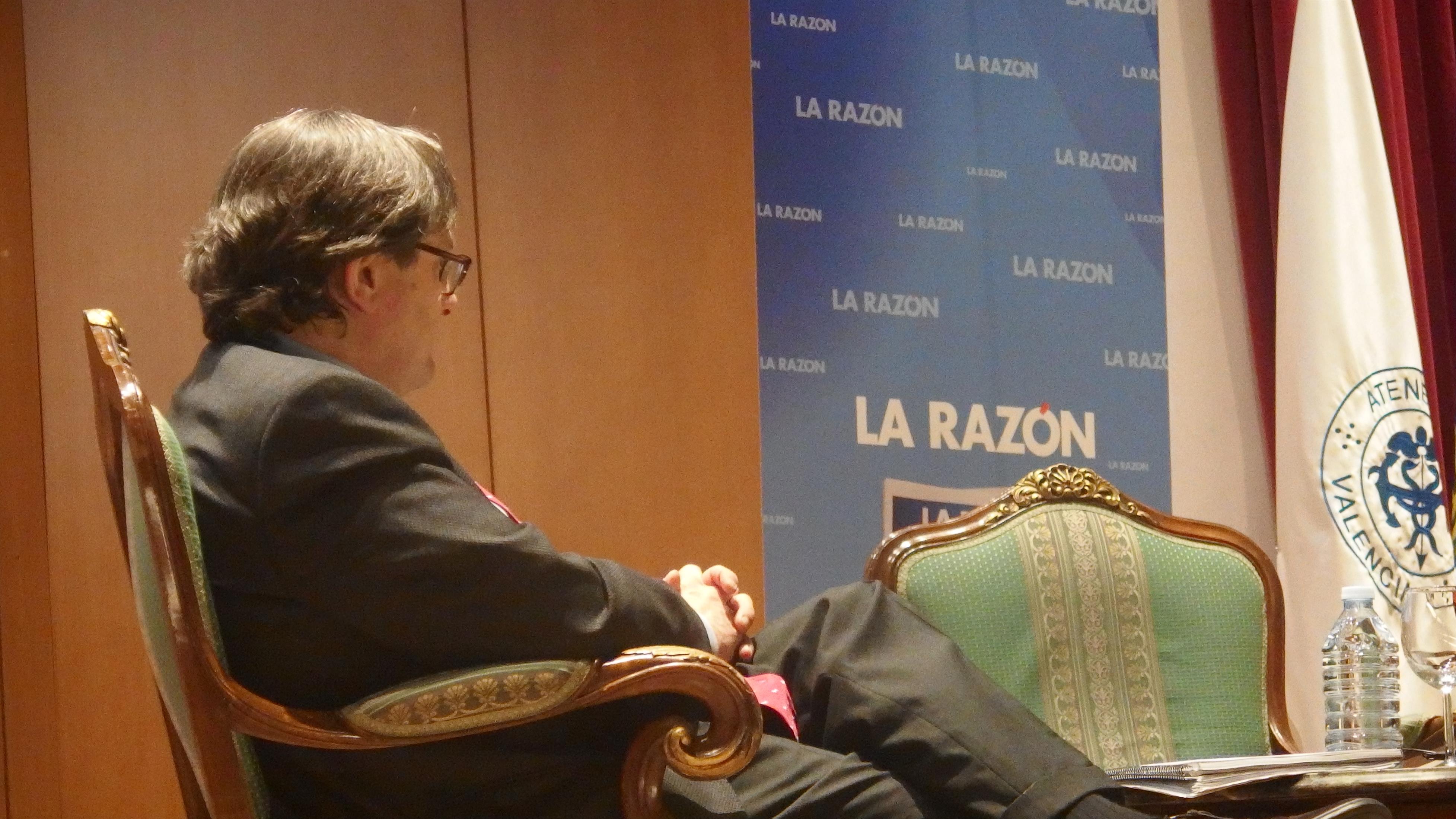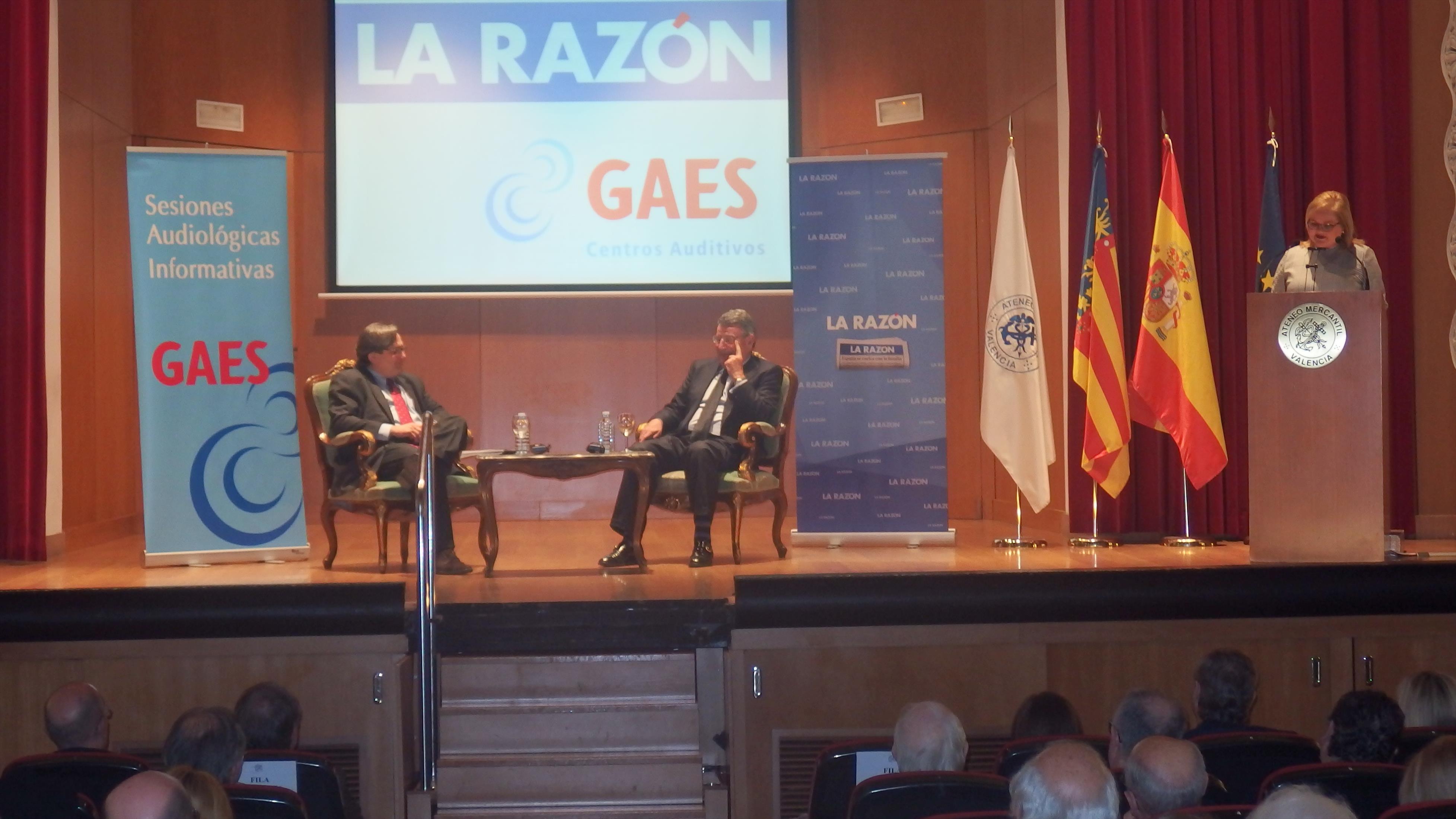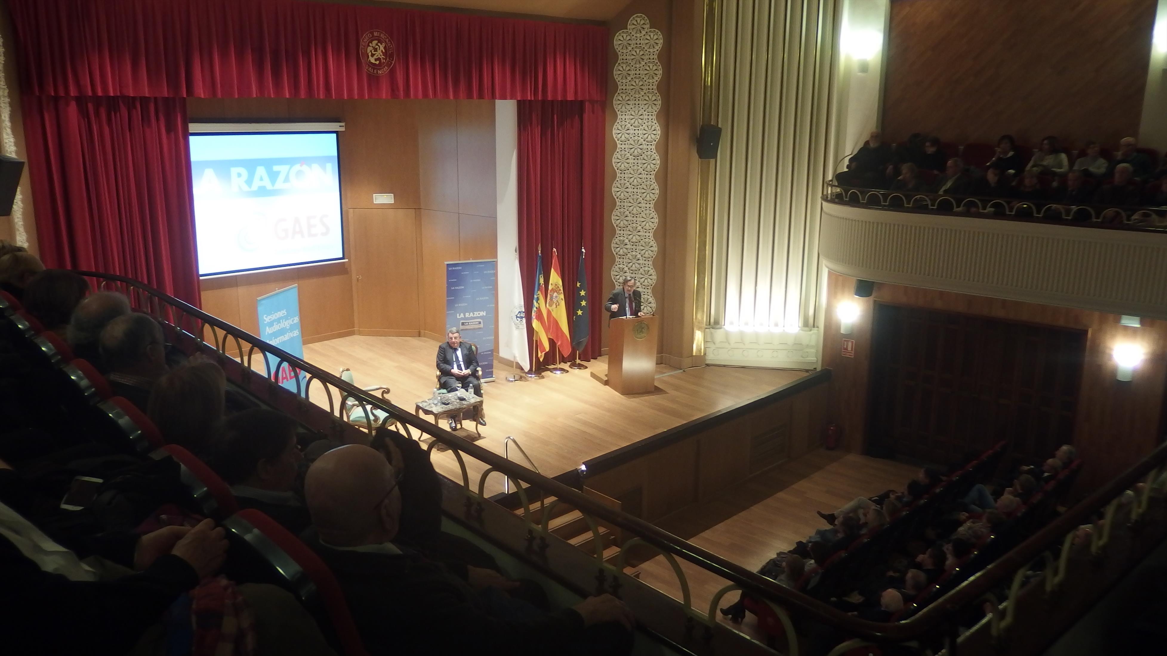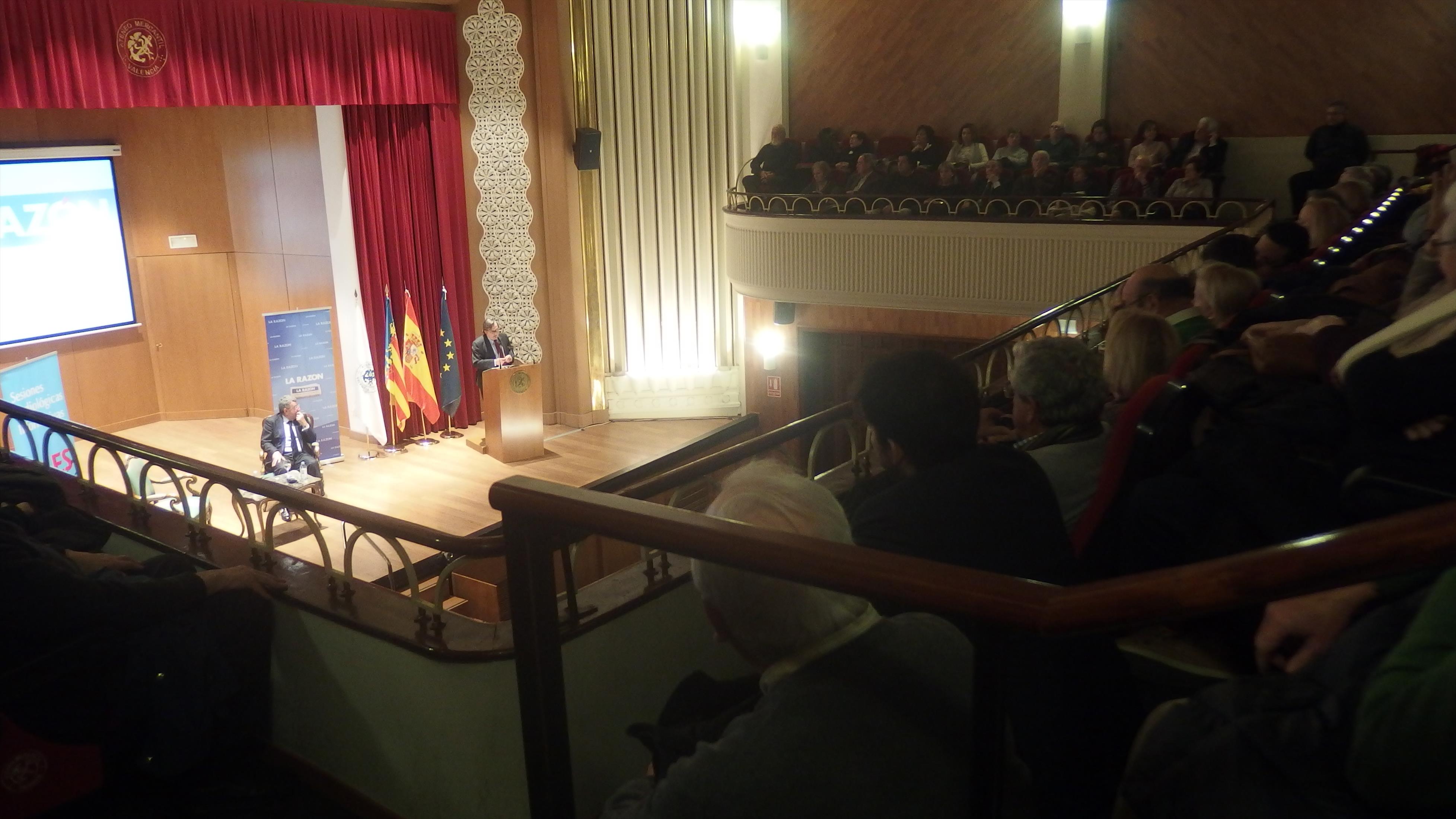 El director de La Razón, Francisco Marhuenda, llenó el Salón de Actos del Ateneo Mercantil en la conferencia en la que realizó un exhaustivo repaso tanto político, económico como social de la actualidad en España. El popular periodista abordó los principales temas y no rehuyó ninguna de las preguntas que se le formularon, además, de realizar un repaso evolutivo de la sociedad española desde la década de los 70 hasta hoy en día.