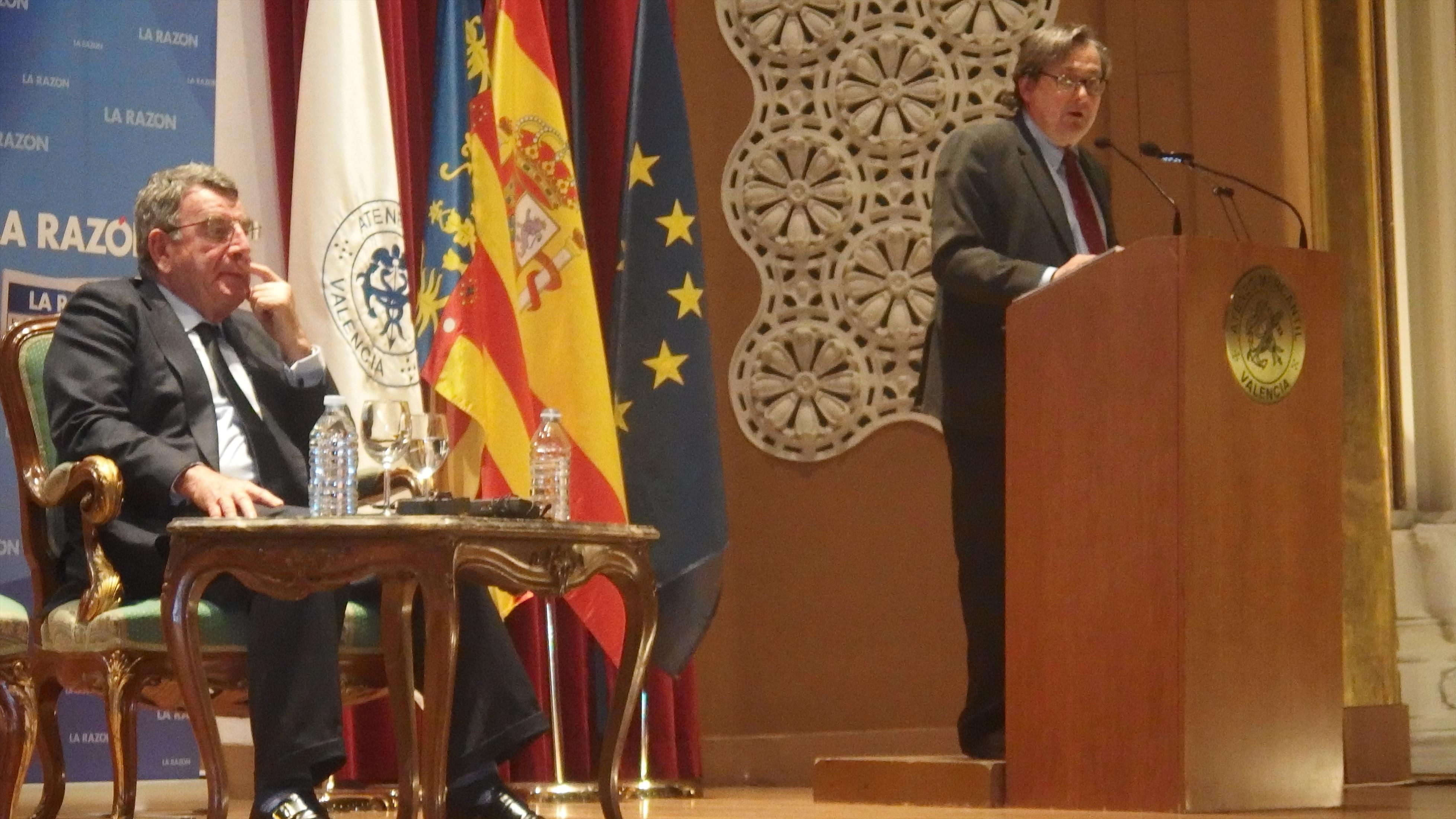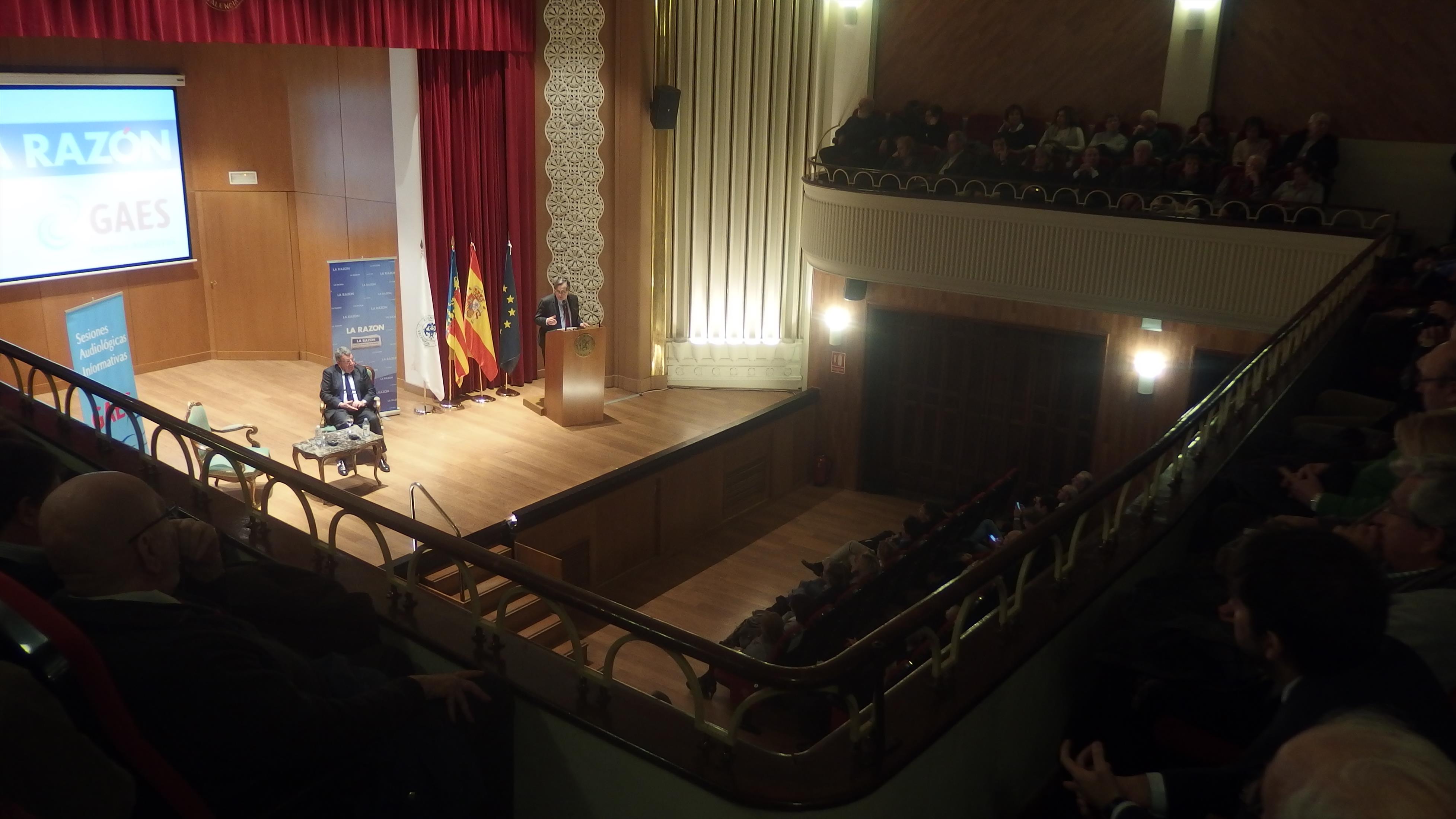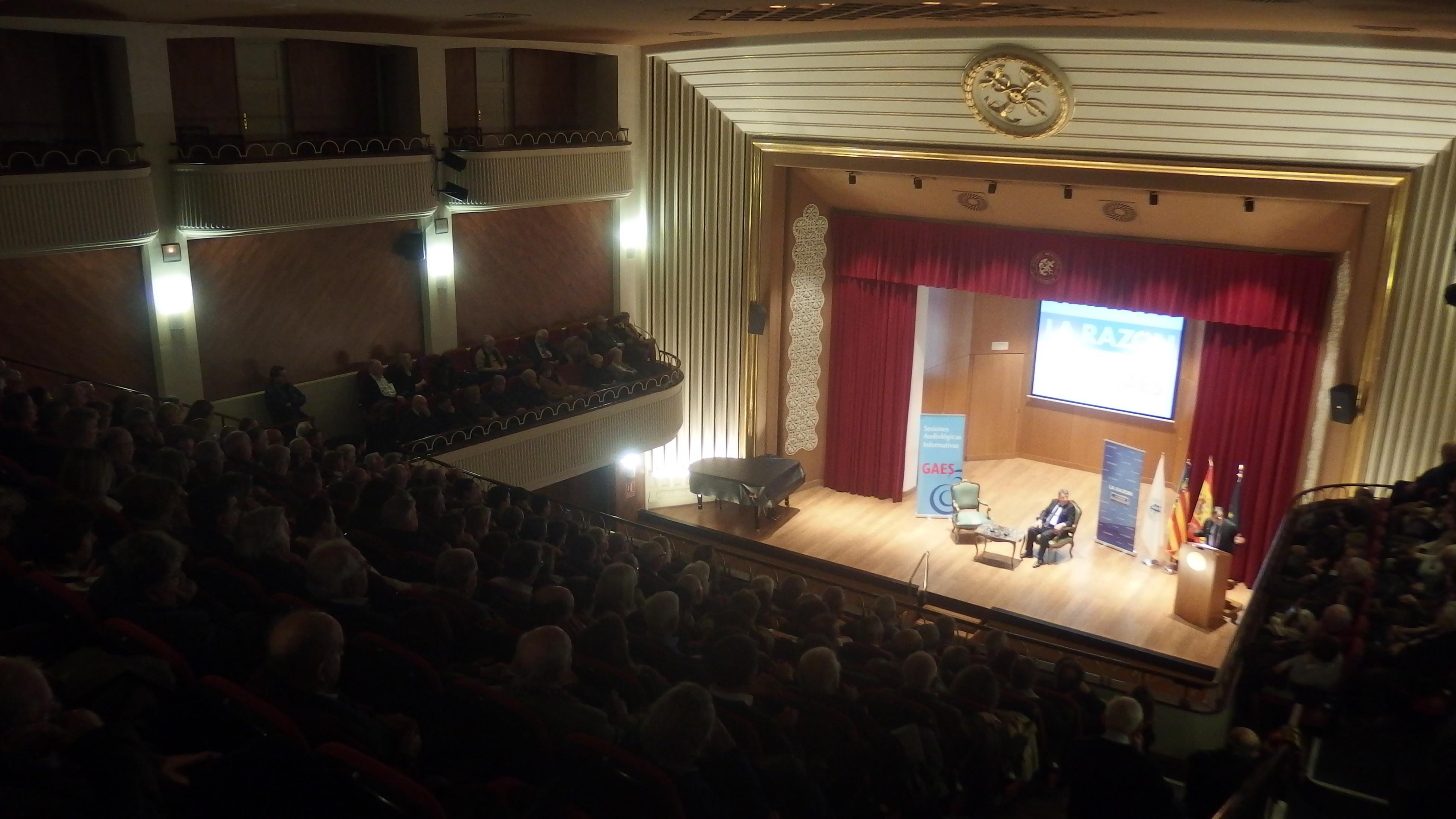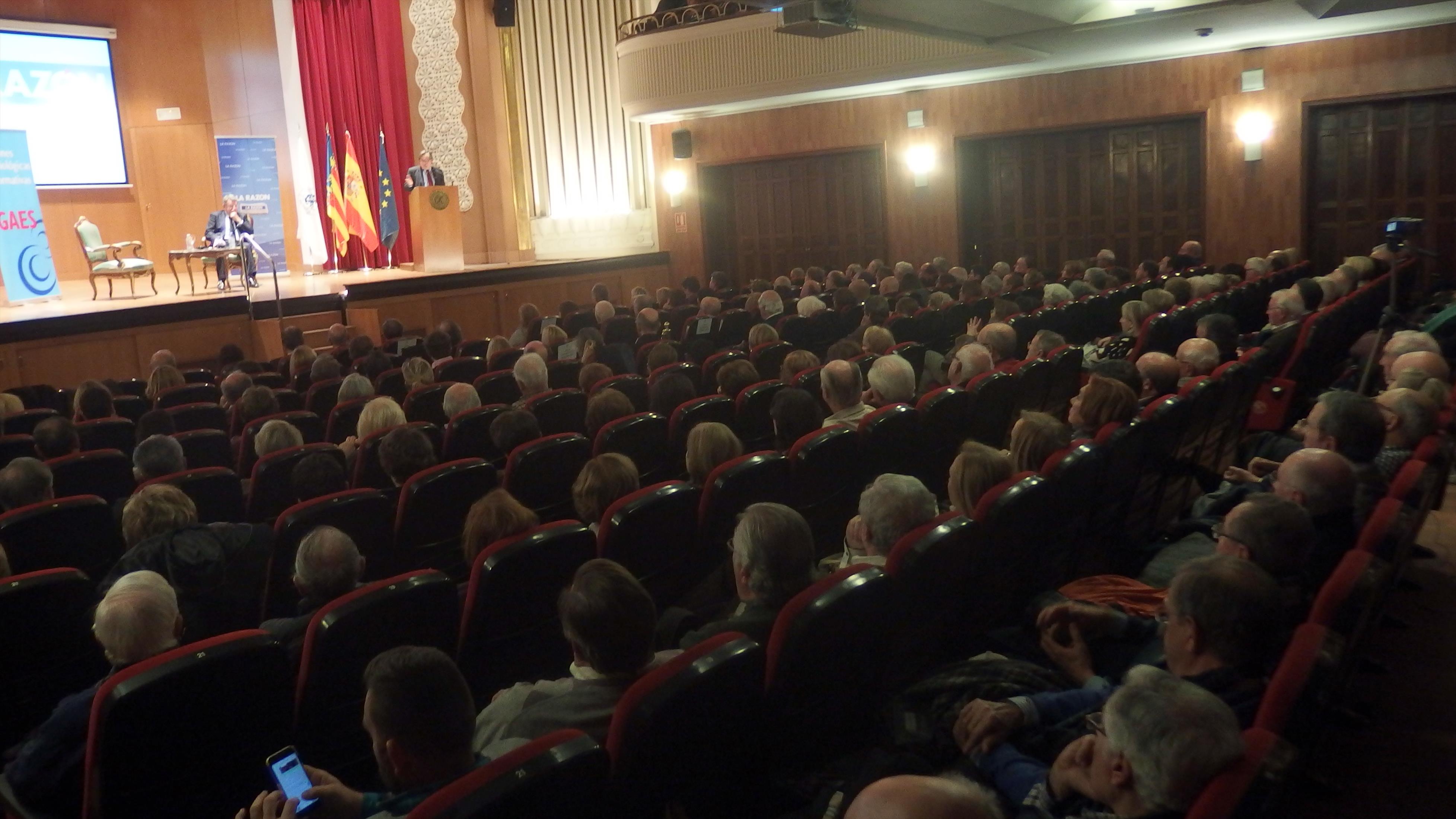 El director de La Razón, Francisco Marhuenda, llenó el Salón de Actos del Ateneo Mercantil en la conferencia en la que realizó un exhaustivo repaso tanto político, económico como social de la actualidad en España. El popular periodista abordó los principales temas y no rehuyó ninguna de las preguntas que se le formularon, además, de realizar un repaso evolutivo de la sociedad española desde la década de los 70 hasta hoy en día.