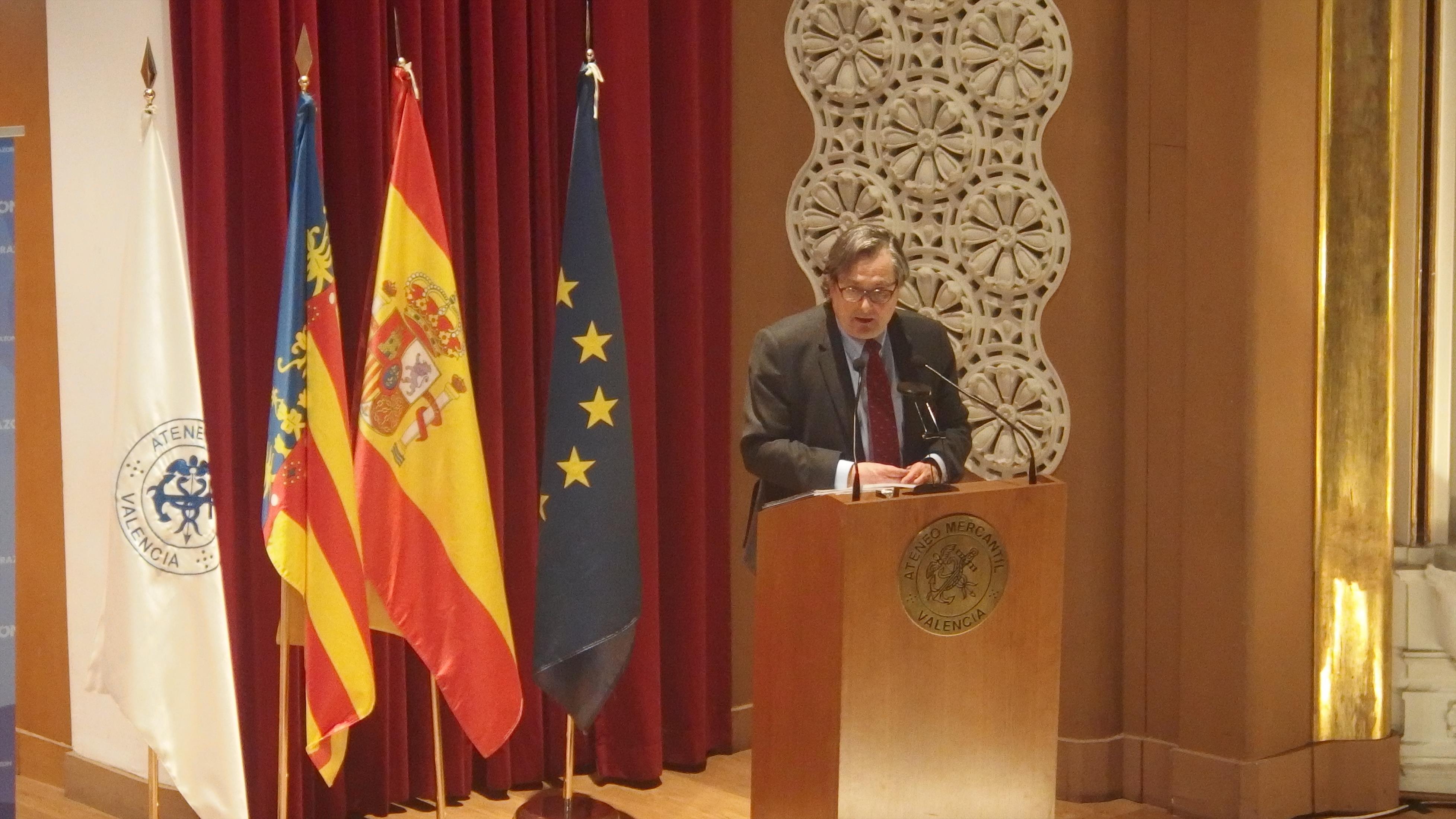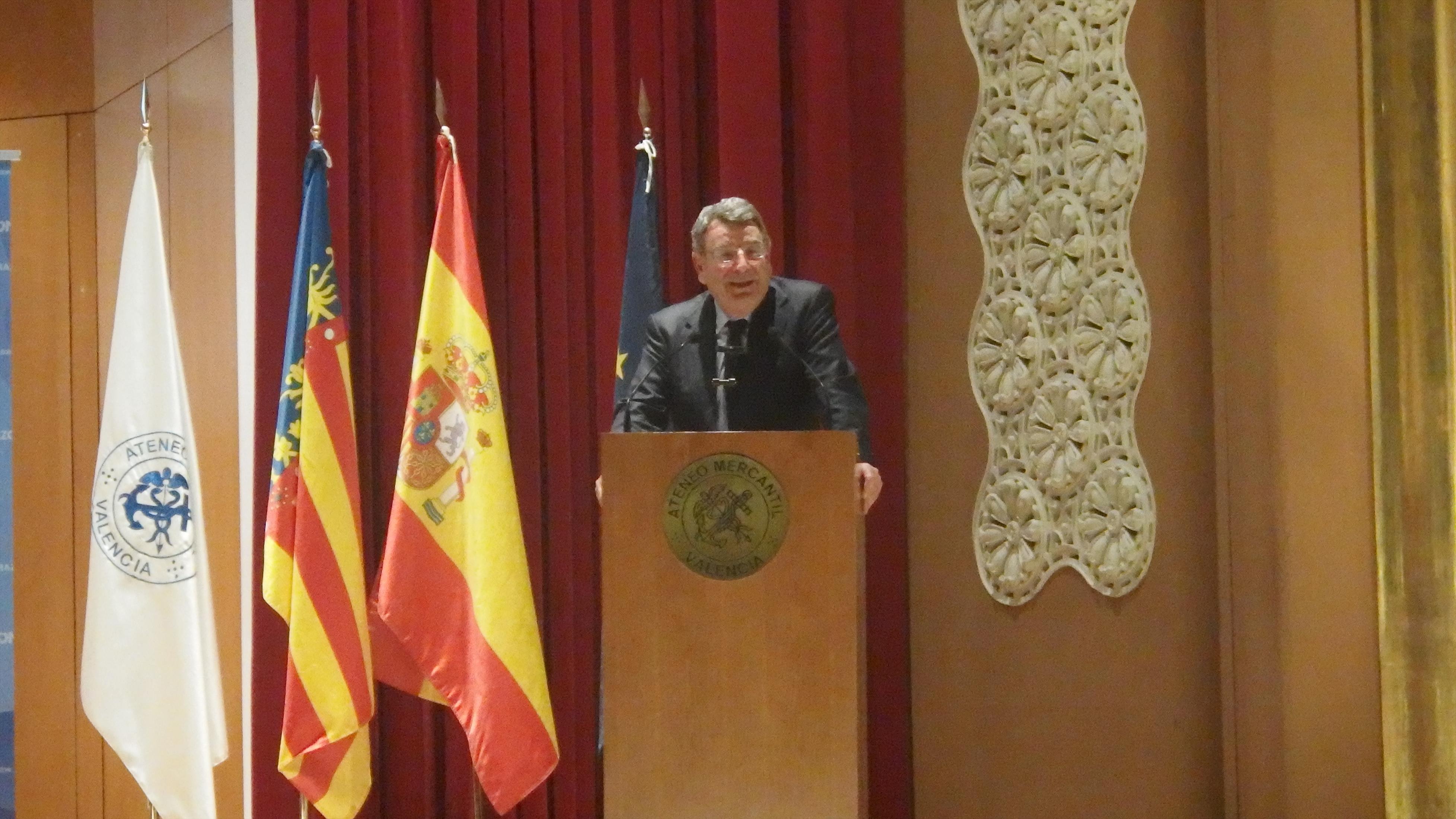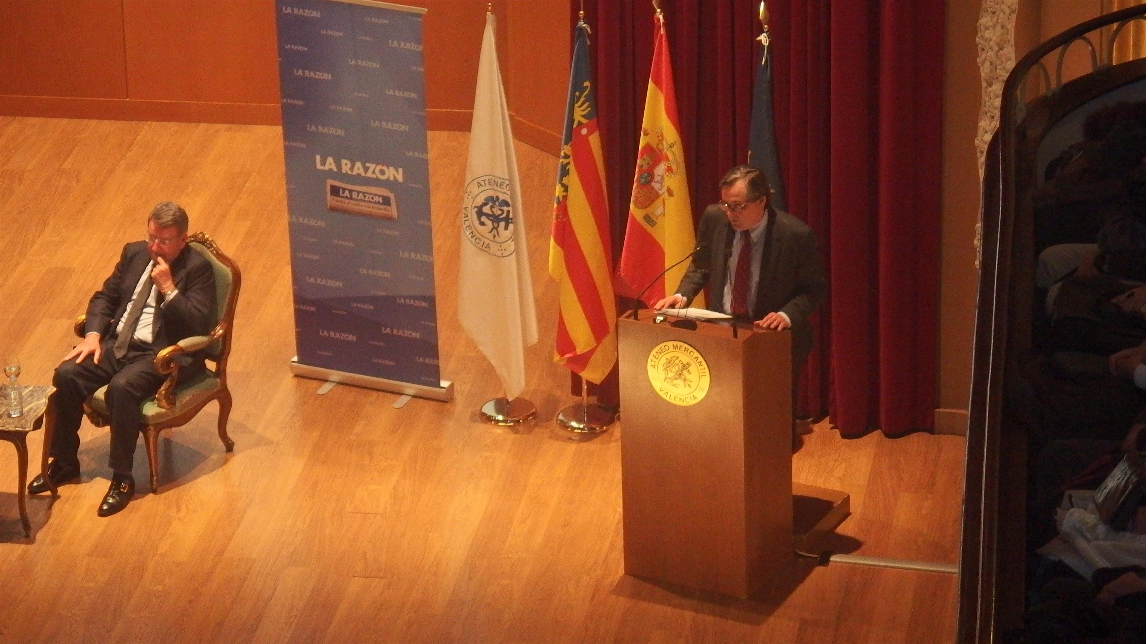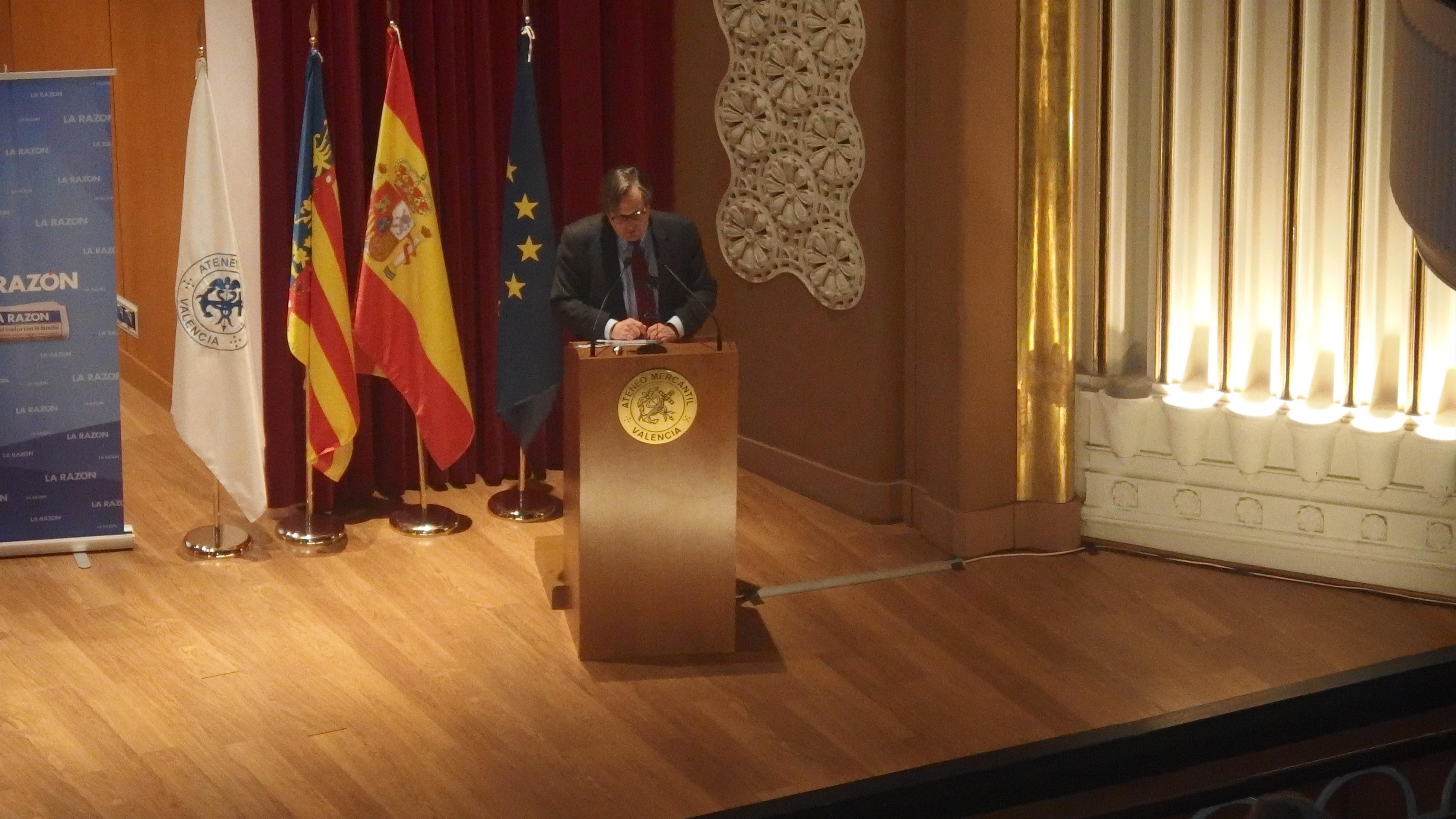 El director de La Razón, Francisco Marhuenda, llenó el Salón de Actos del Ateneo Mercantil en la conferencia en la que realizó un exhaustivo repaso tanto político, económico como social de la actualidad en España. El popular periodista abordó los principales temas y no rehuyó ninguna de las preguntas que se le formularon, además, de realizar un repaso evolutivo de la sociedad española desde la década de los 70 hasta hoy en día.
