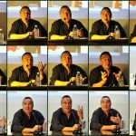 Finalizaron las imágenes con la proyección de una doble página de su cuaderno de trabajo llena de aforismos manuscritos: sin desdeñar la utilidad del ordenador y de internet, la escritura manual, para él, se le revela como necesaria en este tipo de reflexiones, como si hubiera una conexión natural entre el cerebro y la mano para generar estos breves pensamientos. De hecho, dice Marzal, su pensamiento fluye con frecuencia aforísticamente.