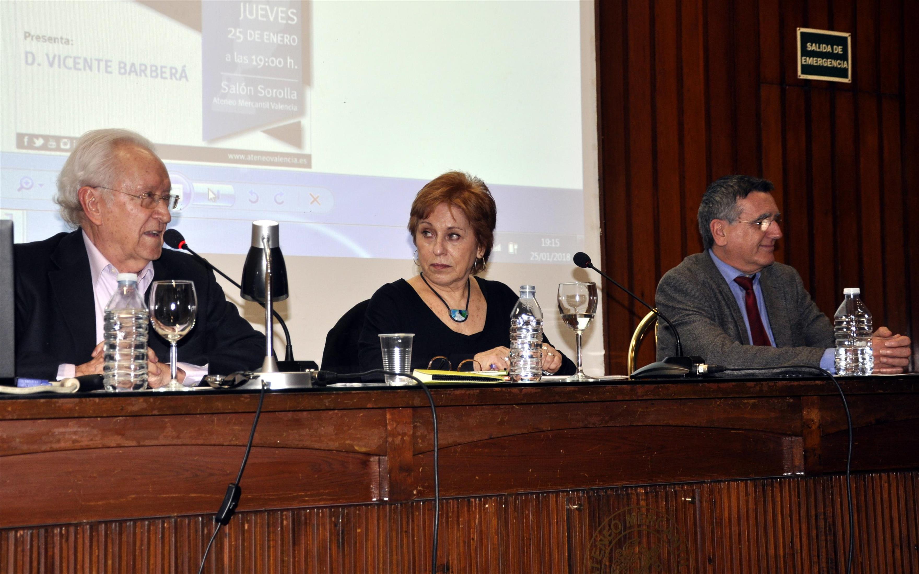 Como es habitual, Vicente Barberá sometió a la poeta a sus preguntas captando, con ello, la atención del público que llenaba el Salón Sorolla.