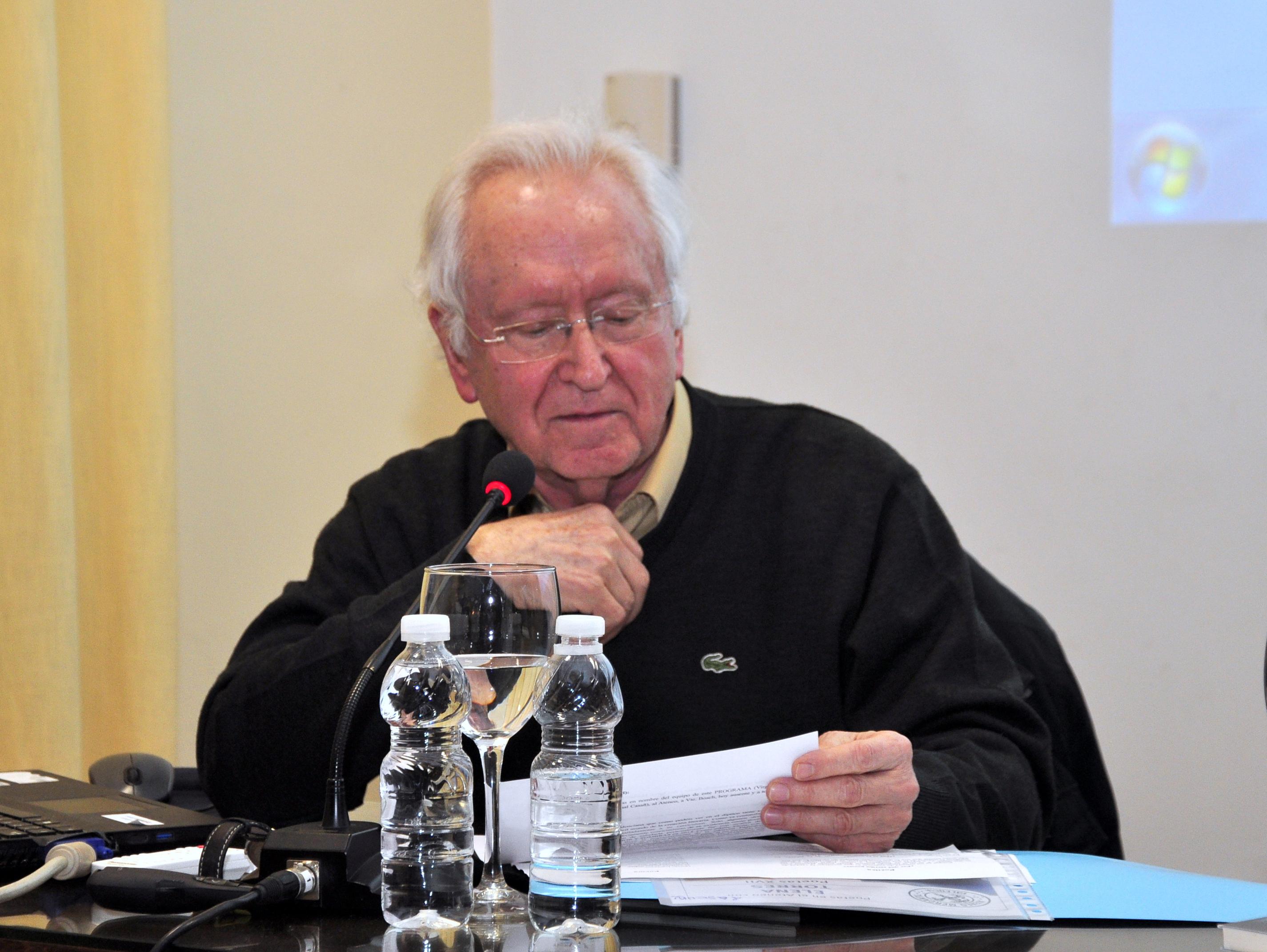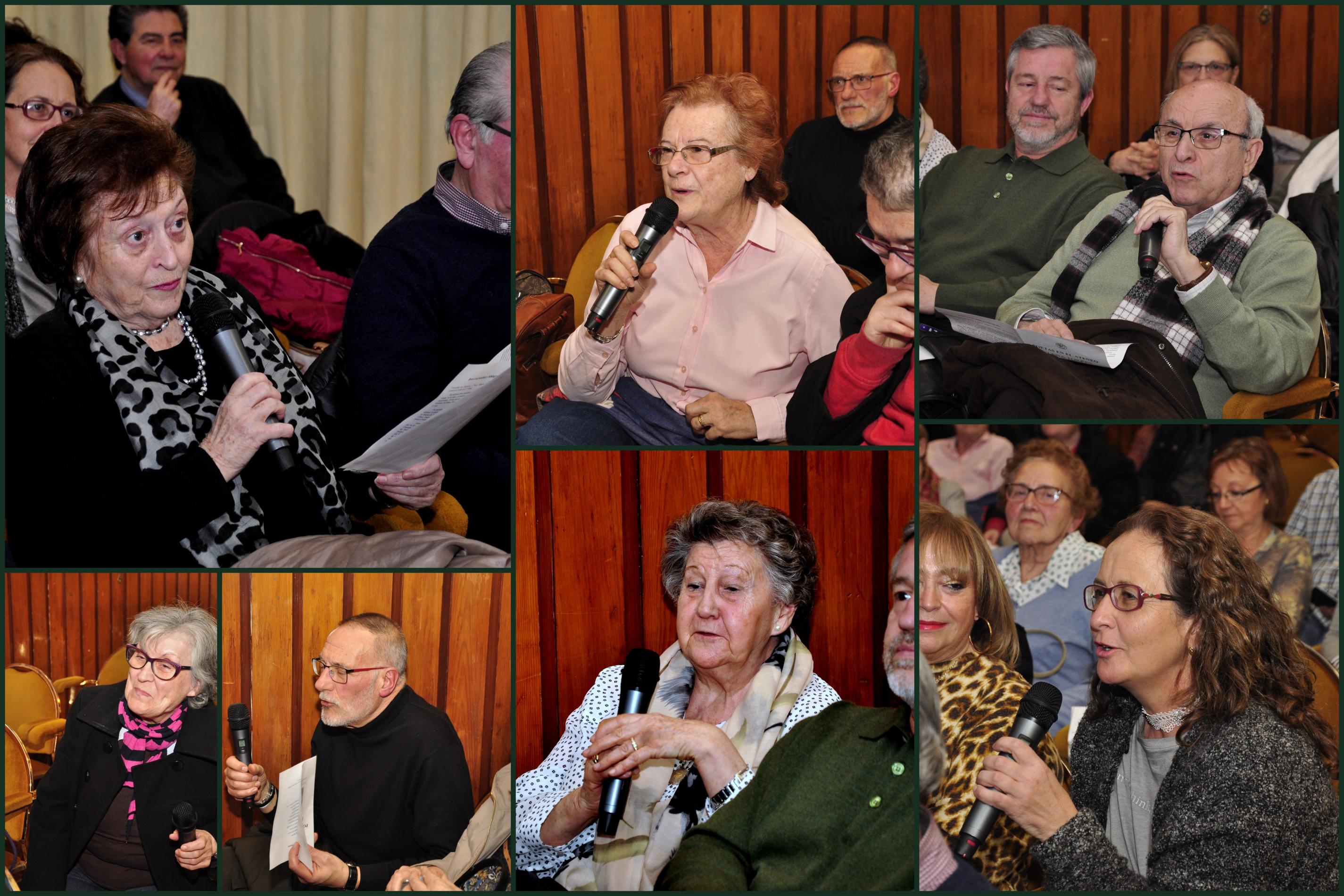 La serie de preguntas fue alternada con la lectura de tres de sus poemas por parte de otros tantos poetas: Blas Muñoz recitó el poema “El club de los poetas”, Gloria de Frutos, “Nubes de abril” y Mila Villanueva “Lapislázuli”