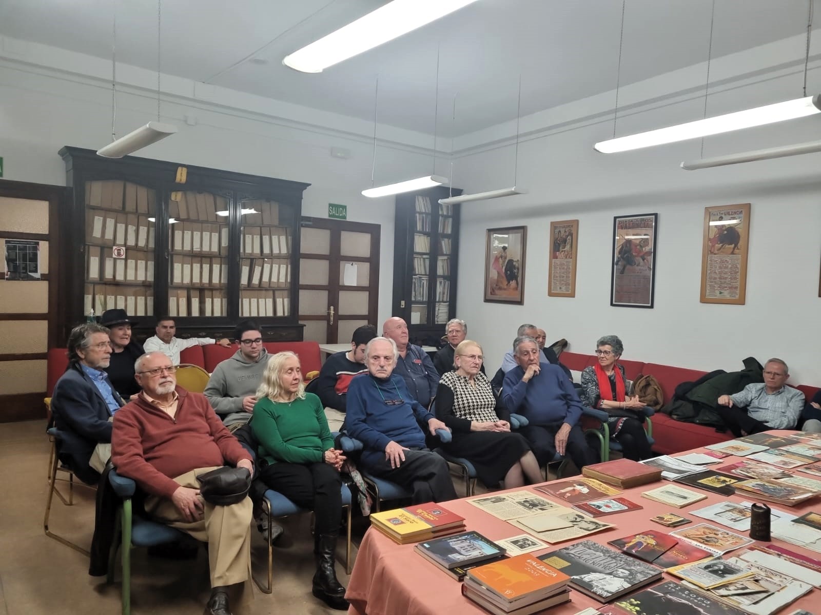 La exposición se inició con una breve evocación de la bondad, paciencia y envidiable memoria del titular de la colección que encontró en la recogida de documentos uno de los cauces para hacer realidad material su sentimiento y su amplísimo saber taurinos. Salvador presentó el material a partir de su inventario provisional y de una clasificación por tipos documentales con carácter amplio: 15 libros, 18 títulos de publicaciones periódicas y 76 documentos con otros formatos como folletos de bolsillo, programas de mano, hojas con anotaciones y mecanuscritas, etc.