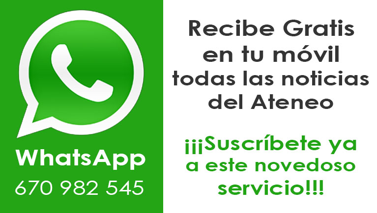 ALTA ATENEO y TU NOMBRE y APELLIDOS si quieres recibir todas las noticias del Ateneo.