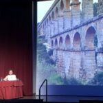 Además, destacó los monumentos romanos más importantes de la ciudad de Tarraco. En primer lugar, destacó la presencia del arco de medio punto del acueducto, construido con sillares de piedra caliza perfectamente ensamblados desde el año 5 a.C. hasta el presente, con una reconstrucción visible en la moldura superior y la inscripción acelera virtuosa en el ático. Elogió la impresionante estructura del acueducto, el Pont del Diable, también conocido como Acueducto de Tarragona, que se extiende a lo largo de unos 25 km sobre el río Gayá. Este acueducto presenta dos niveles de arcos para superar el desnivel, siendo su característica más destacada los pilares escalonados en el primer nivel, una decisión arquitectónica única que diferencia esta obra de otras construcciones contemporáneas. Además, mencionó la reconstrucción del canal Specus, que transportaba agua hacia la ciudad.