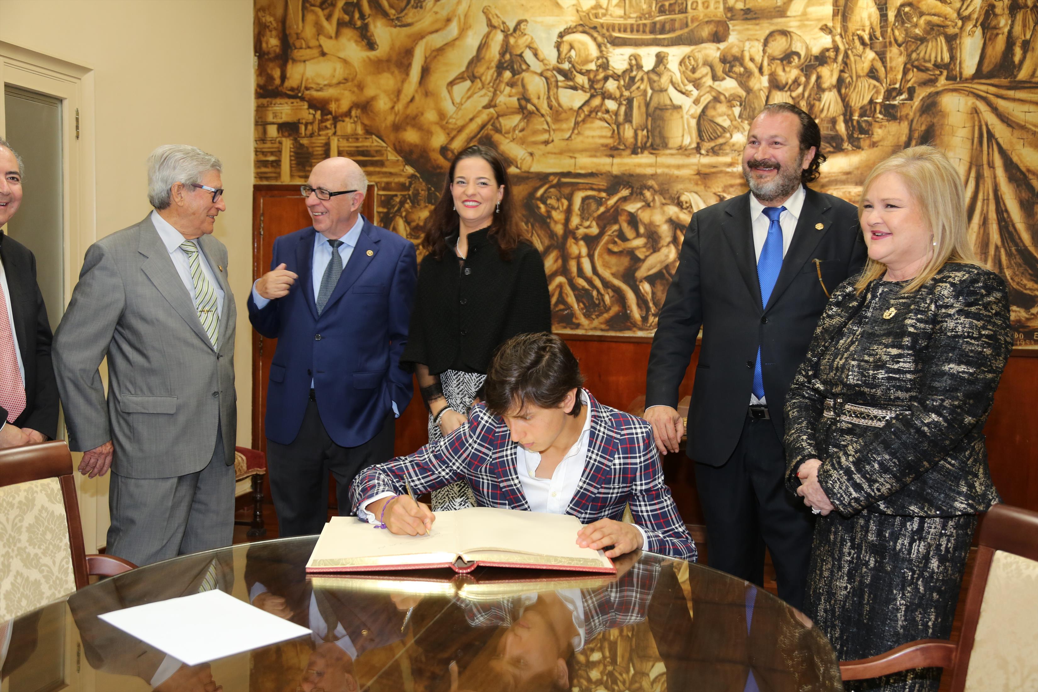 El diestro peruano recogió gustosamente el galardón, una escultura que mezcla una media verónica con la fachada y el escudo del Ateneo Mercantil, obra del joven artista Raúl Hernández, que le encantó a Andrés Roca Rey. El joven limeño compartió mesa y mantel con más de 80 comensales que quisieron acompañarle en este sentido homenaje que el Ateneo Mercantil le rindió. Poco antes de la cena, Roca Rey firmó en el libro de honor de la centenaria institución dejando un mensaje de agradecimiento por todo este reconocimiento. "Pondré esta hermosa escultura en un buen sitio en mi casa. Me ha encantado".