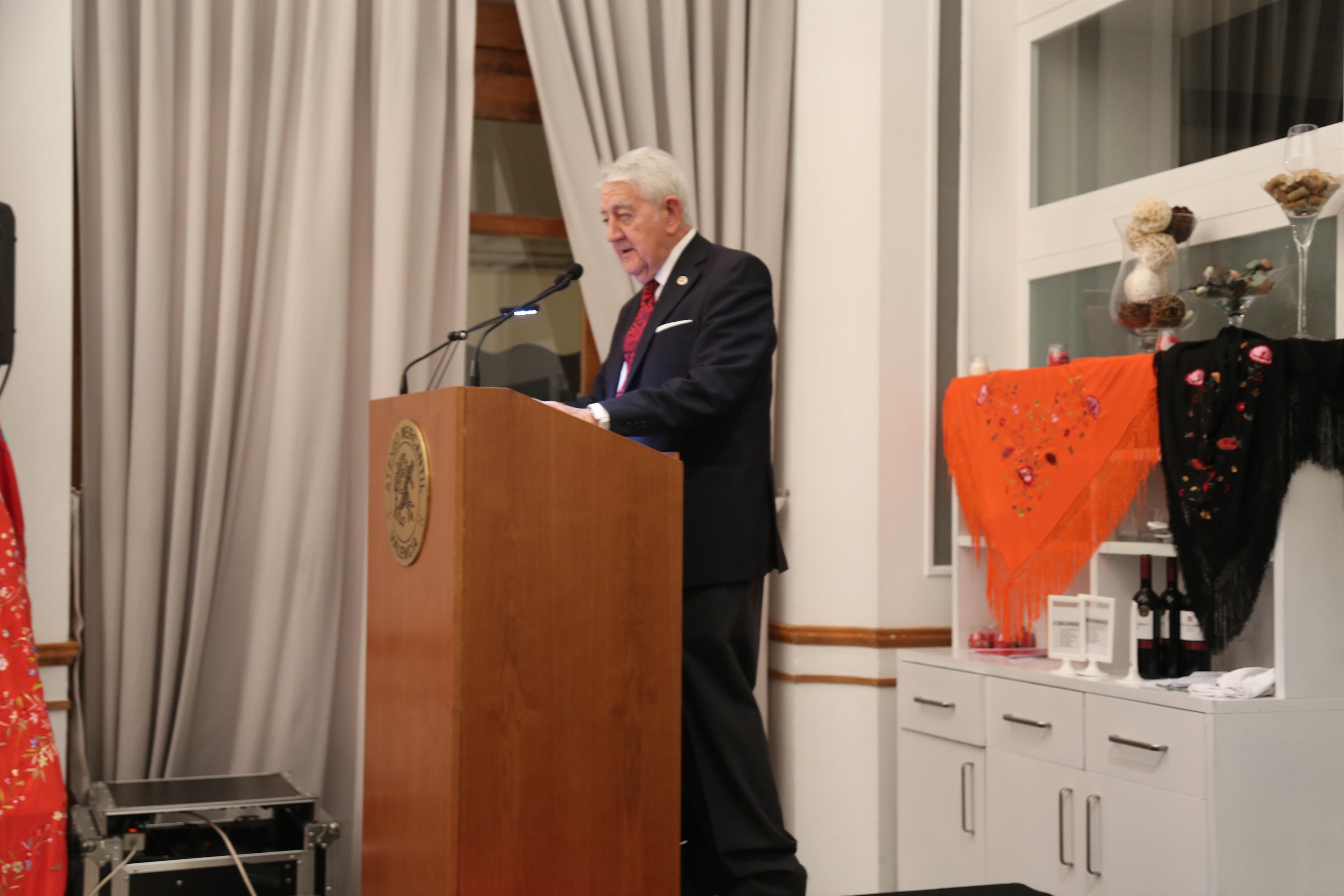 A su llegada al Ateneo Mercantil, se sorprendió de ver gente joeven que había acudido a su cena de homenaje y se llevó una grata sorpresa. "Es bonito que los jóvenes estén recibiendo esta herencia tan bonita que es la Tauromaquia”. Ya en el acto y tras la cena, el que abrió el fuego fue el presidente de la Tertulia Taurina, D. Juan Coca, luego le llegó el turno a la presidenta de la entidad, Dña. Carmen de Rosa, quien destacó aparte del toreo de Roca Rey, las tres virtudes por las que fue elegido por unanimidad: "Por el esfuerzo, la disciplina y la pasión que pone a todo cuanto realiza en la plaza”, dijo.