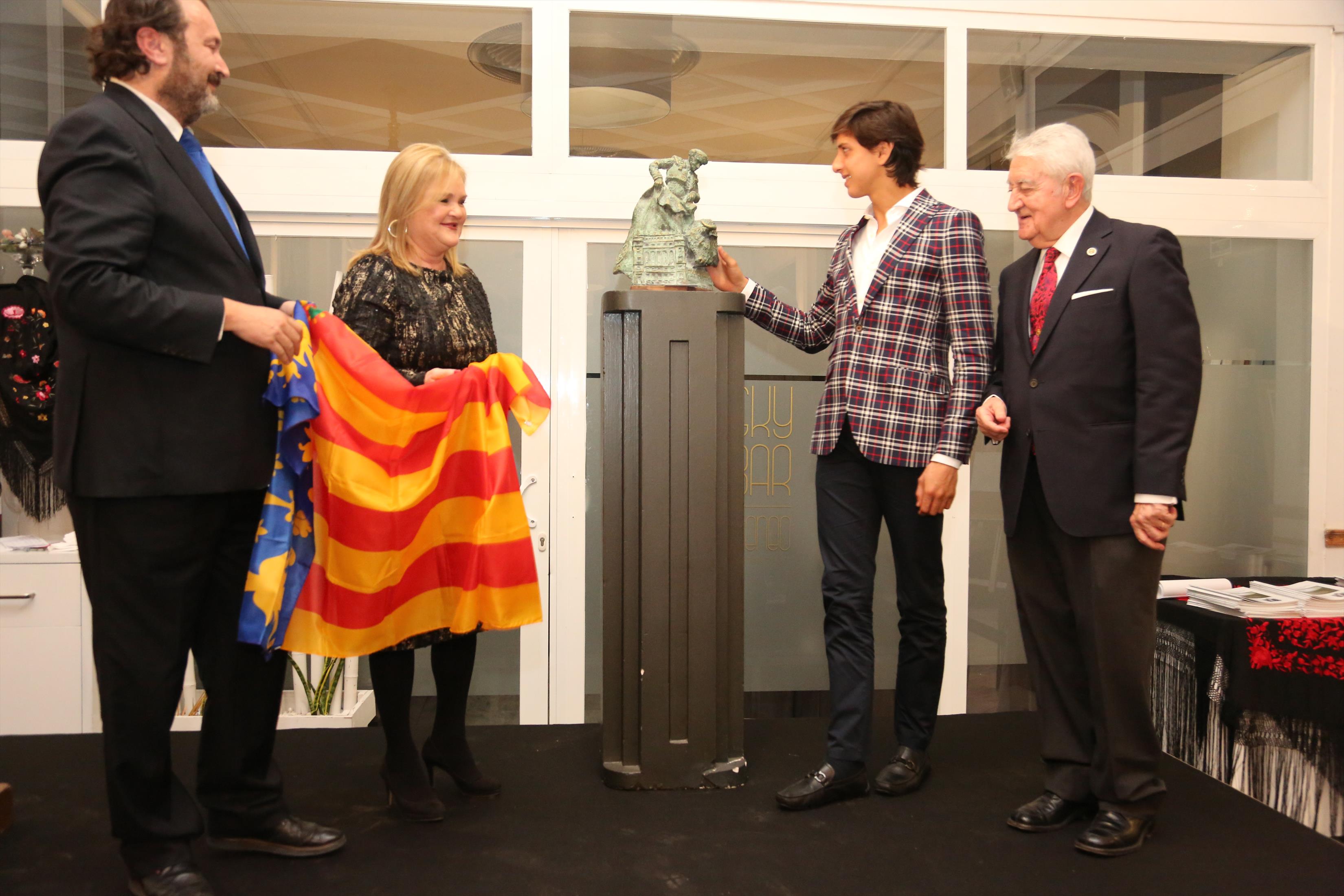 El Ateneo Mercantil de Valencia se vistió de gala para recibir al torero limeño, Andrés Roca Rey, en un emotivo acto en el que se le hizo entrega al joven matador de 20 años del XIII Premio Distinción Enrique Mora Guillén como triunfador de la temporada 2016 en la capital del Turia. Sus dos faenas en la Feria de Fallas y de Julio fueron perfectas. Roca Rey subió al escenario para recibir el renovado y bonito premio que otroga la Tertulia Taurina del Ateneo Mercantil de Valencia y dedicó unas grandes palabras a los aficionados al toro que hay en la ciudad y en la Comunitat: “Esta ciudad nos da mucho a los toreros. Ahora llegan las Fallas, que es la feria que te pone cada año en el camino. En mi caso particular, esta plaza me ayudó desde el principio, desde el mismo día de mi debut sin caballos, y por eso le tengo un cariño muy especial”, destacó.