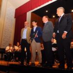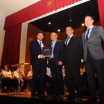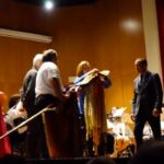 En el intermedio fueron entregadas las partituras de los dos estrenos a sus destinatarios, D. Germán Zaragozá, presidente de la Federación de Bous al Carrer, y D. Bruno Gimeno, novillero y alumno destacado de la Escuela Taurina de Valencia. Además, Dª. Reme Mazzolari impuso el corbatín recuerdo del concierto a la bandera de la Sociedad Musical "Santa Cecilia" de Chelva.