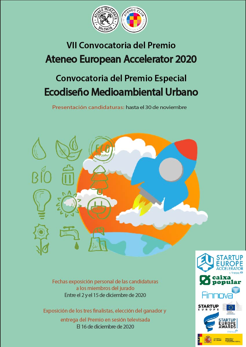 El Ateneo Club de Innovación y Empresa, en colaboración con la Fundación Finnova y con el patrocinio de Caixa Popular, ha ampliado el plazo de presentación de candidaturas hasta el lunes 30 de noviembre a las 21 horas del VII Premio Ateneo European Accelerator, que tiene como objetivo premiar a un joven emprendedor e impulsar su empresa a nivel europeo, y acceder a oportunidades de financiación, networking, movilidad y comunicación internacional.