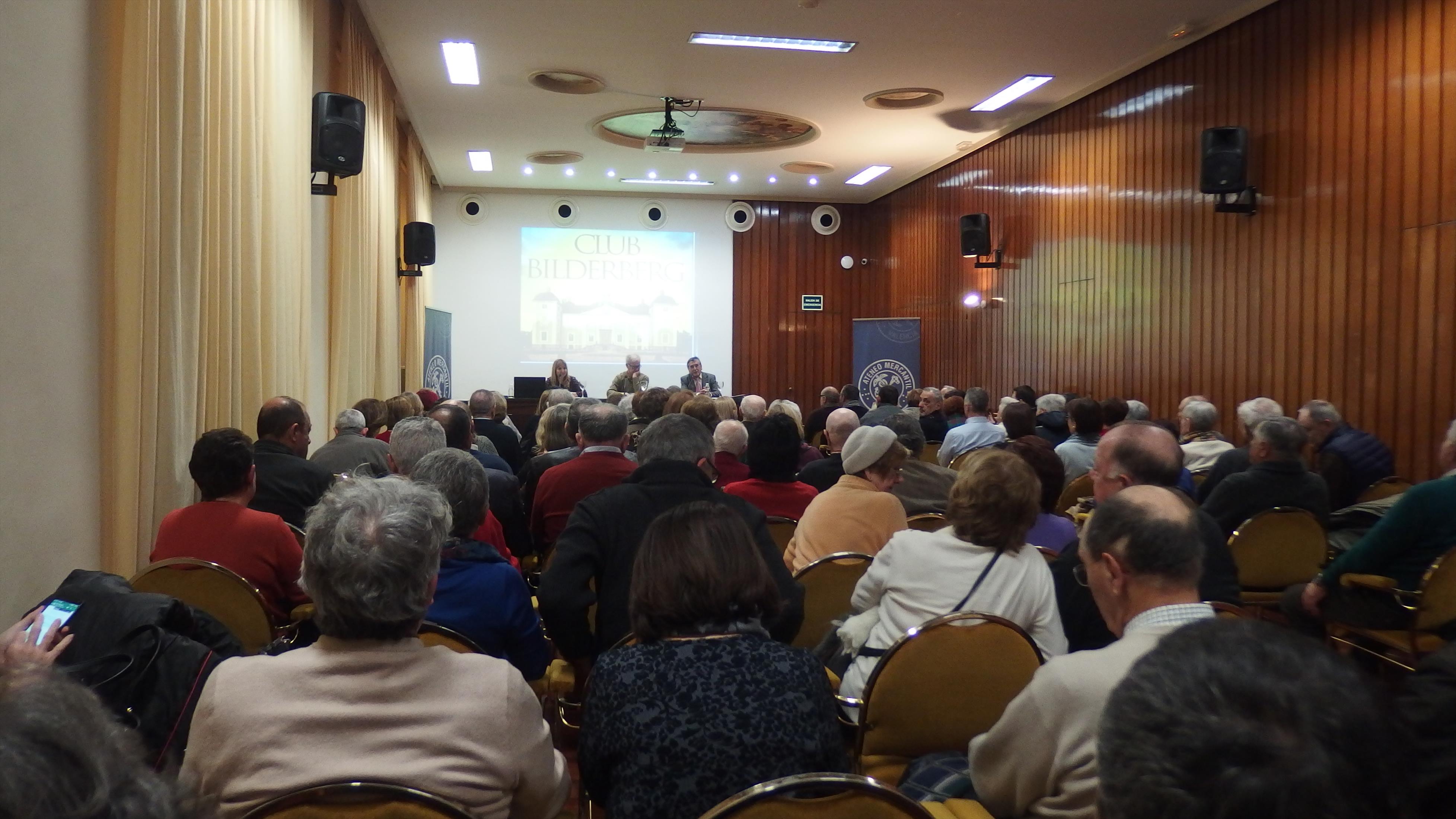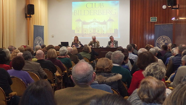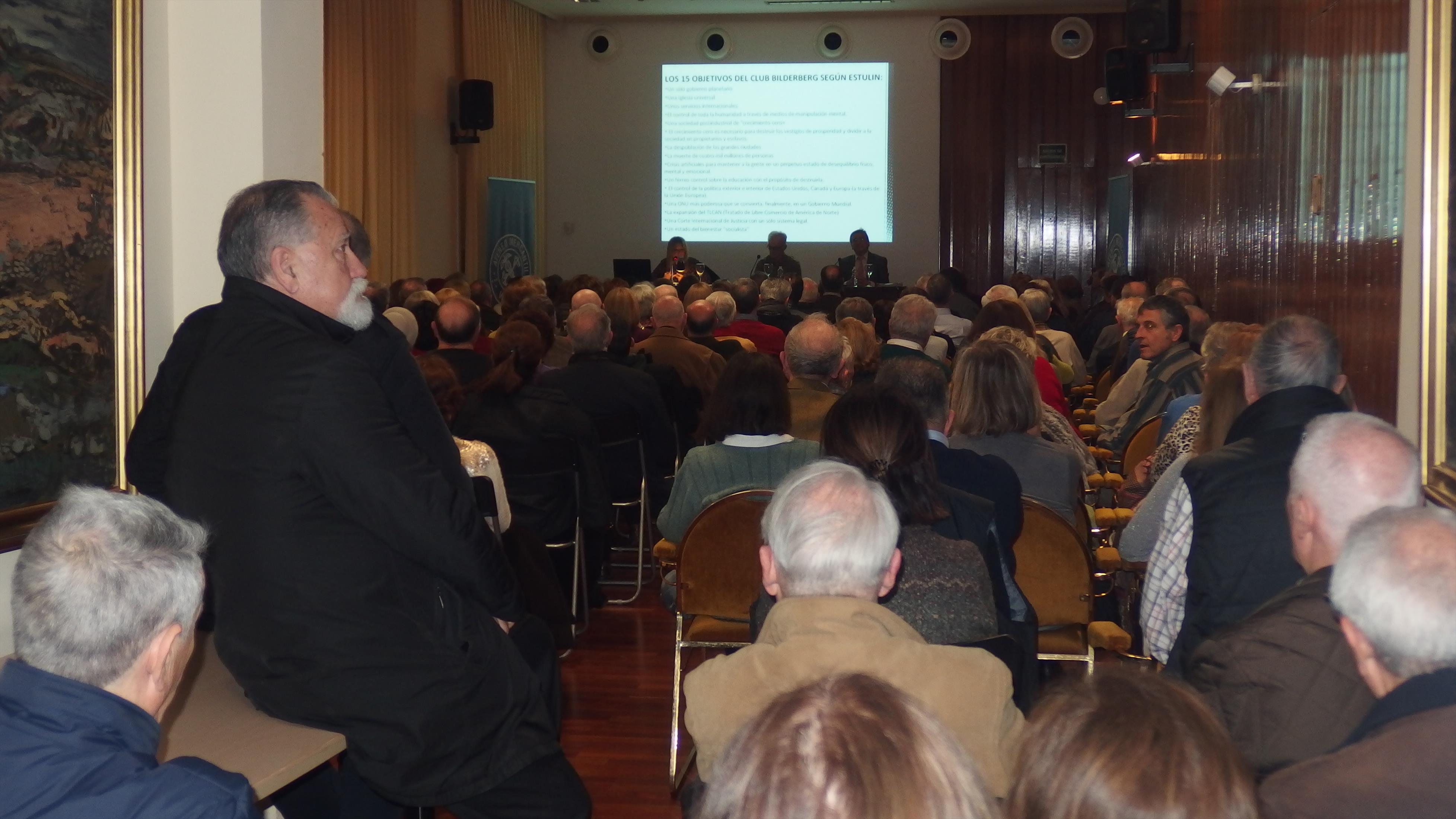 El Salón Sorolla se llenó hasta la bandera para desgranar todos los secretos del Club Bilderberg, todos los planes ocultos de esta élite financiera que ha controlado el mundo, un peligro para las fuerzas democráticas, ya que unos pocos han tomado decisiones económicas que luego repercuten en el día a día de los ciudadanos. España ha sido uno de los países más sometidos a las decisiones de este club, junto a otros países del sur de Europa. Un club que para pertenecer a él se tiene que tener una alta posición social y una extensa red de contactos globales o bien ser un joven político a quien ellos vean futuro para tratar de convencer.