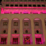 El Ateneo Mercantil de Valencia iluminó de rosa la fachada de su edificio este viernes 19 de octubre para apoyar a todas esas luchadoras que libran a diario una batalla contra el cáncer de mama. Además, este año se ha hecho lo propio con su sala más emblemática, el Salón Noble, la que lució el color rosa en cada una de sus columnas y en el techo.