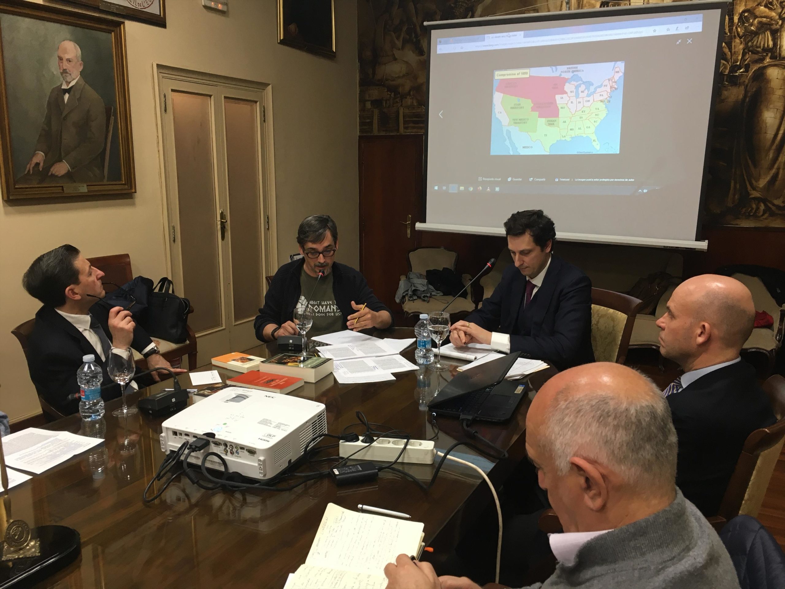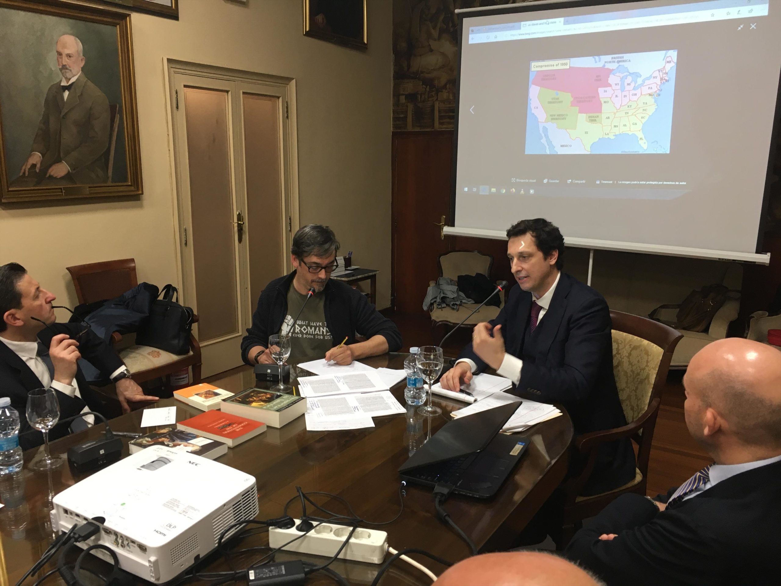 Durante la sesión se han puesto de manifiesto las tensiones internas de un presidente electo que se vio obligado a emplear la fuerza para resolver una crisis democrática. El enfrentamiento entre esclavistas y abolicionistas llevaba a la unión al abismo de una posible disolución merced a la secesión de los estados conferedados. En el momento de máxima urgencia, Lincoln encargó al general U.S. Grant el desencadenamiento de la guerra total contra los estados del sur, refundando la Unión de una forma definitiva, y dando lugar al surgimiento de los Estados Unidos de América como nación en el sentido moderno de la palabra. Las reflexiones de Abraham Lincoln en torno al concepto histórico de Grandes Hombres pone de manifiesto que, la conservación de las instituciones políticas republicanas (léase, democráticas), depende fundamentalmente de que sus pilares estén construidos contra la acumulación del poder.