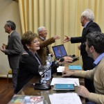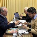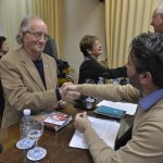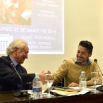 Vicente Barberá dirigió luego un interrogatorio sobre cuestiones como el poeta y el editor, el caos y el orden en la poesía, el deseo y la realidad, la inspiración, cómo se llega a ser poeta… Estas preguntas dieron pauta para el animado coloquio final, en el que también intervino el público. En él cabría destacar la controversia sobre el sentimiento caótico que es ordenado por la forma del poema, y la afirmación del poeta de que todo poema es en parte un fracaso, porque no lo puede decir todo, y eso precisamente es lo que anima a seguir escribiendo.