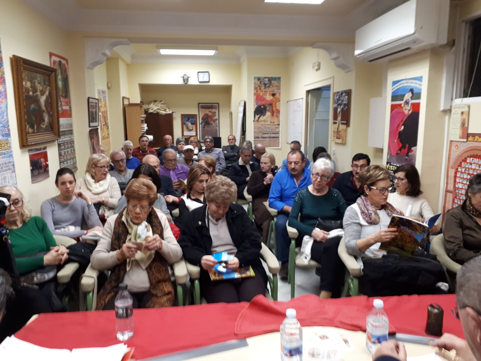 Nueva experiencia de la Tertulia Taurina del Ateneo Mercantil y muy positiva por cierto, fue el mano a mano de D. Nicasio Jiménez y D. Jorge Cartier, que más bien en el argot taurino sería una encerrona con seis “morlacos” y dos sobreros. Hecho el sorteo, donde se introdujeron dos boletos en la gorra de un espectador con los nombres de cada uno de los artistas, salió en primer lugar el nombre del que abre plaza, que en esta ocasión fue el de Nicasio y que alternará con Jorge en segundo lugar.