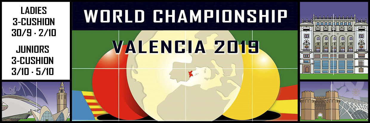 Los Campeonatos del Mundo de Billar Femenino y Junior se celebran en Valencia (España) este 2019. Ambos torneos se celebran de forma consecutiva en las instalaciones del Ateneo Mercantil de Valencia (Plaza del Ayuntamiento, 18). El Campeonato Mundial Femenino se disputará entre el 30 de septiembre y el 2 de octubre, mientras que Campeonato Mundial Junior se celebrará entre el 3 y el 5 de octubre.