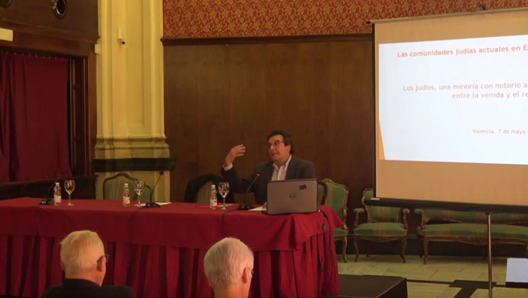 Esta conferencia está enmarcada dentro del Ciclo El Pueblo Judío y España, y la impartió D. Uriel Macías, director del Gabinete de Prensa de la Embajada de Israel, que dio una visión de los judíos de la España actual. En la actualidad, la población judía de España está formada aproximadamente por unas 40.000 personas. Los judíos españoles mantienen instituciones educativas de escuela dominical en todas las comunidades, así como colegios específicos para enseñanza infantil, primaria y secundaria en Madrid, Barcelona y Melilla. Existen más de 30 sinagogas en el país, algunas con capacidad de hasta 800 personas. Mientras que la Federación de Comunidades Judías de España (FCJE) es la organización que agrupa a la inmensa mayoría de comunidades y organizaciones de esta confesión en el país.